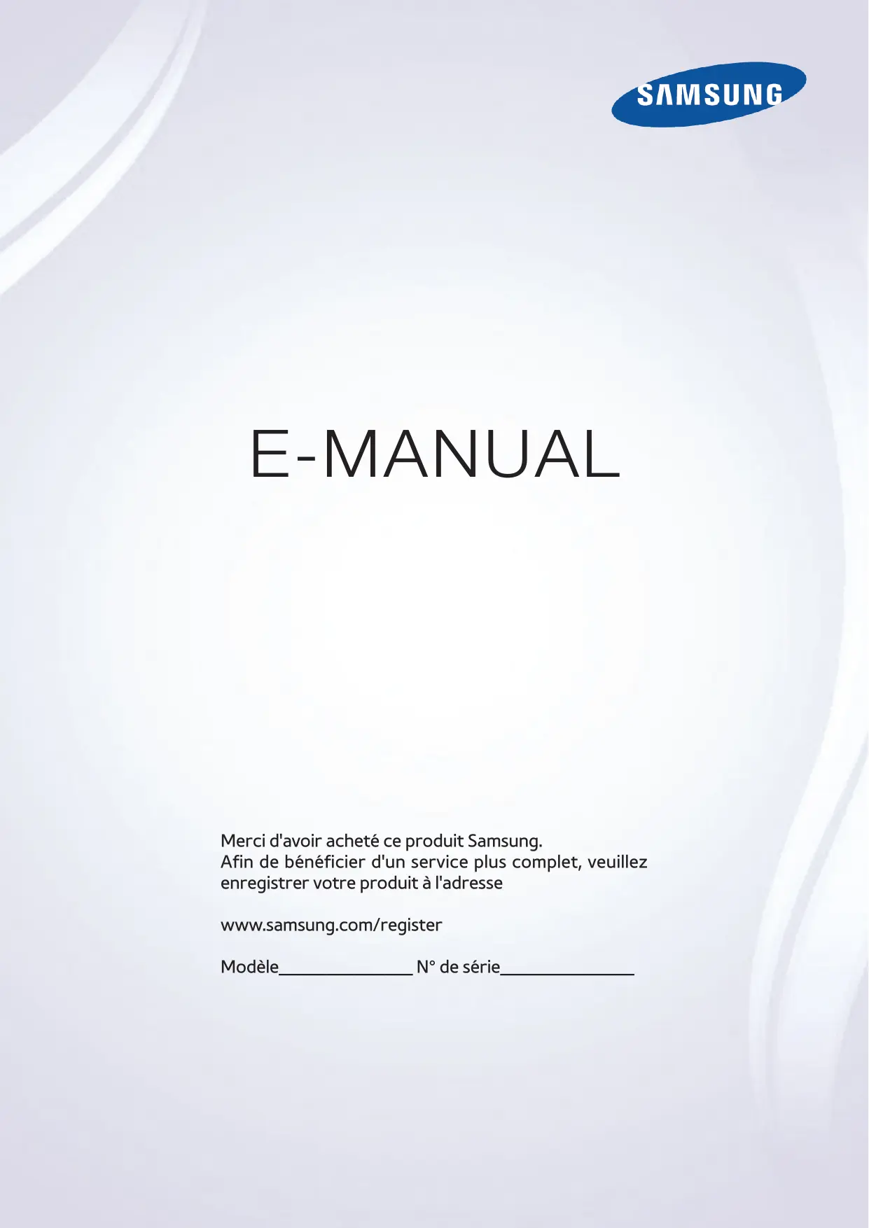 E-MANUAL Merci d'avoir acheté ce produit Samsung. Afin de bénéficier d'un service plus complet, veuillez enregistrer votre produit à l'adresse www.samsung.com/register Modèle______________ N° de série______________ Contenu Connexions d'entrée et de sortie audio Guides de démarrage Utilisation de Smart Hub