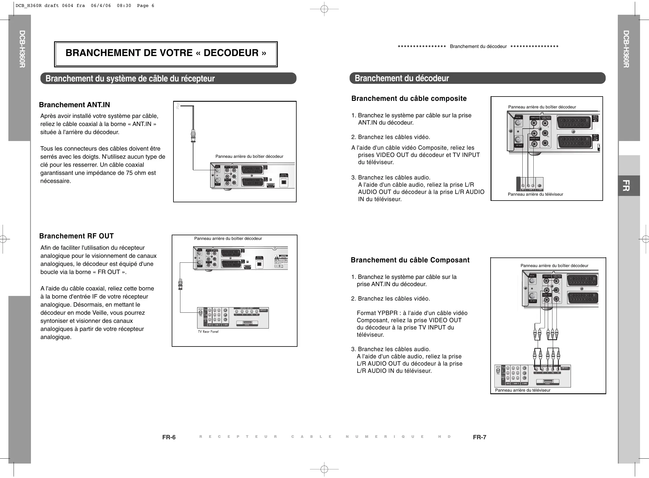 DCB-H360R DCB-H360R Branchement du décodeur Branchement du décodeur DCB_H360R draft 0604 fra 06/4/06 08:30 Page 12 DCB-H360R DCB-H360R DESCRIPTION DESCRIPTION Panneau arrière GUIDE