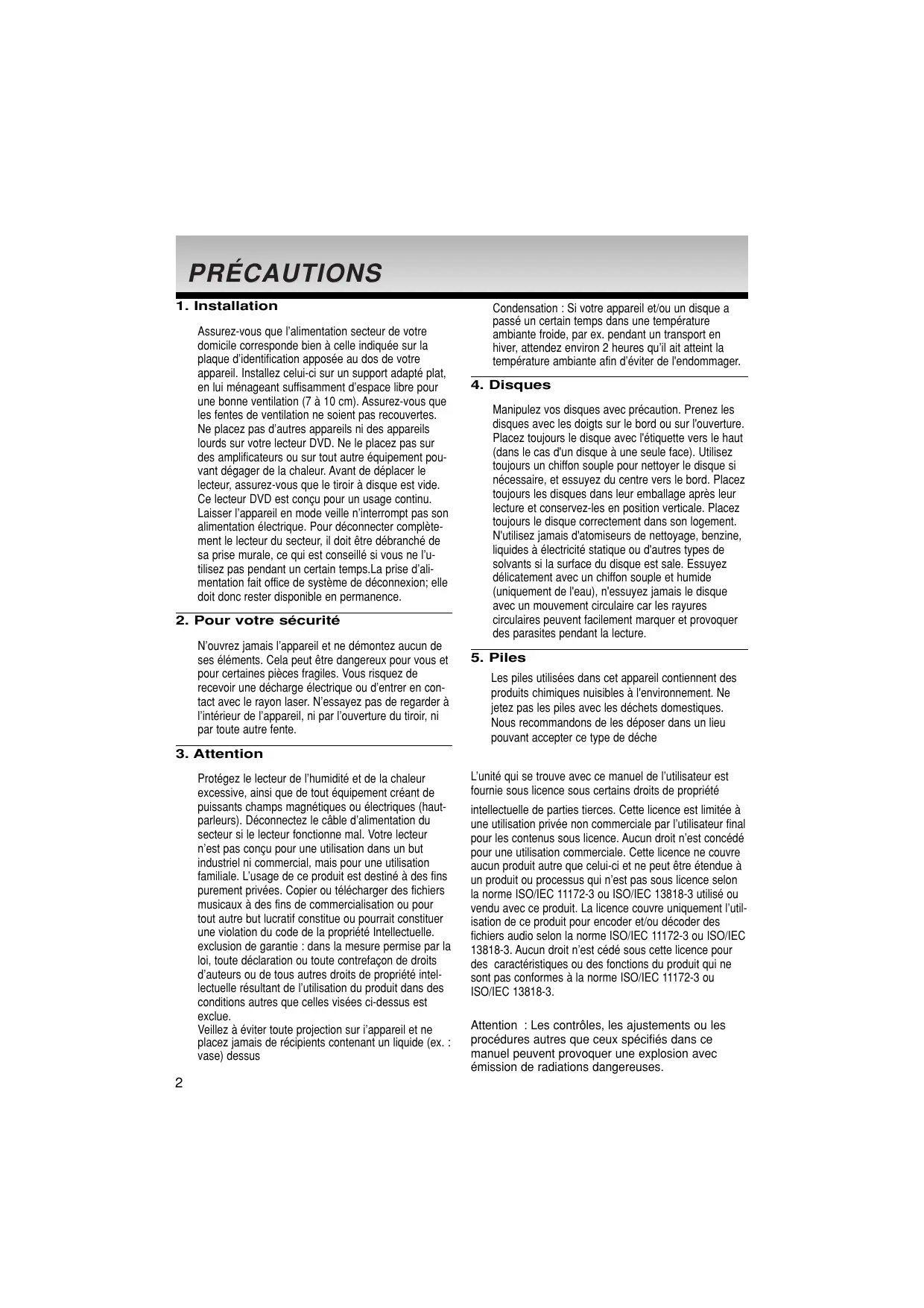 DVD Player Lecteur DVD DVD Speler DVD-P370 DVD-P375 PRECAUTIONS