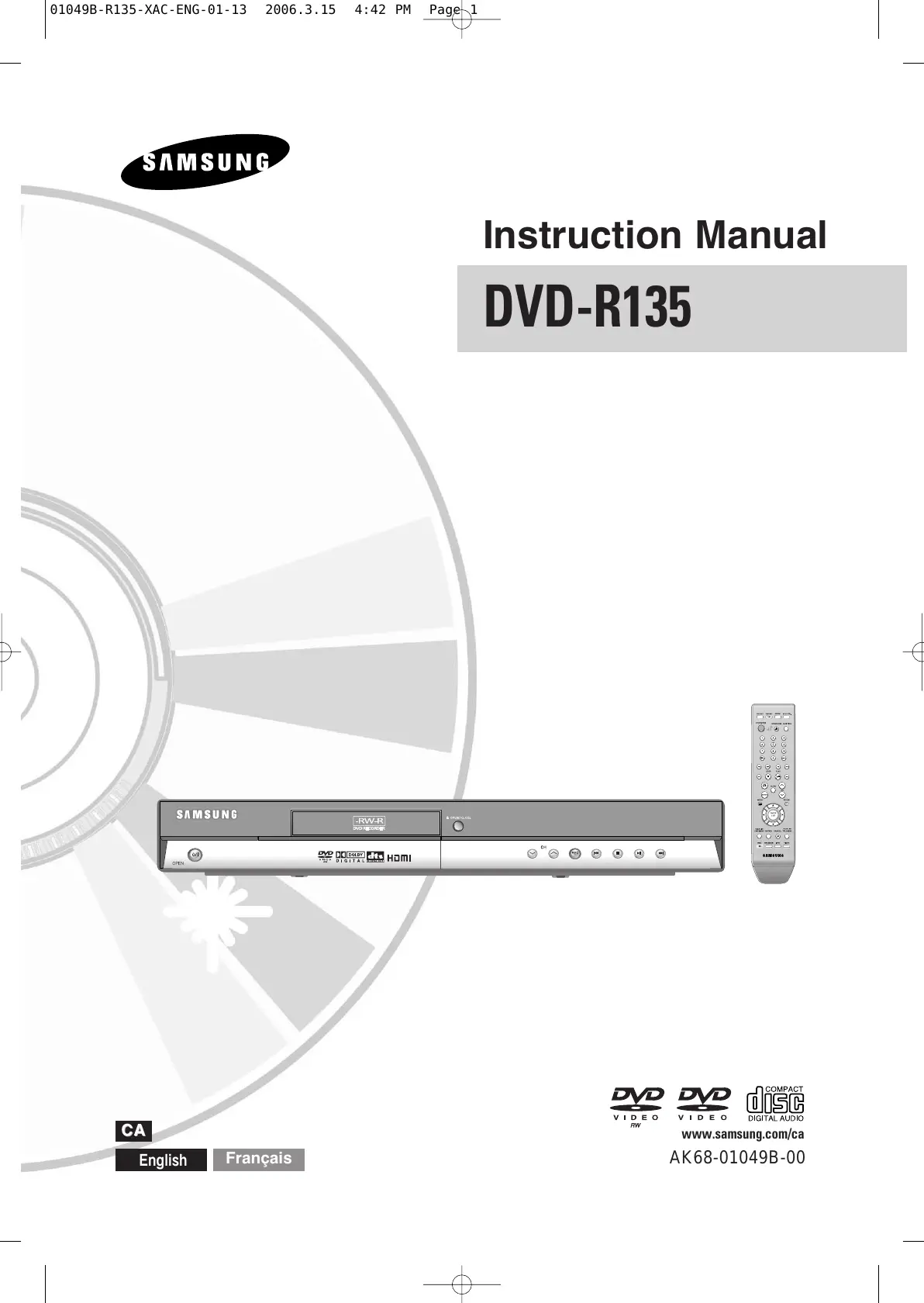 Retrouvez gratuitement la notice de l'appareil DVD-R135 SAMSUNG au format PDF.