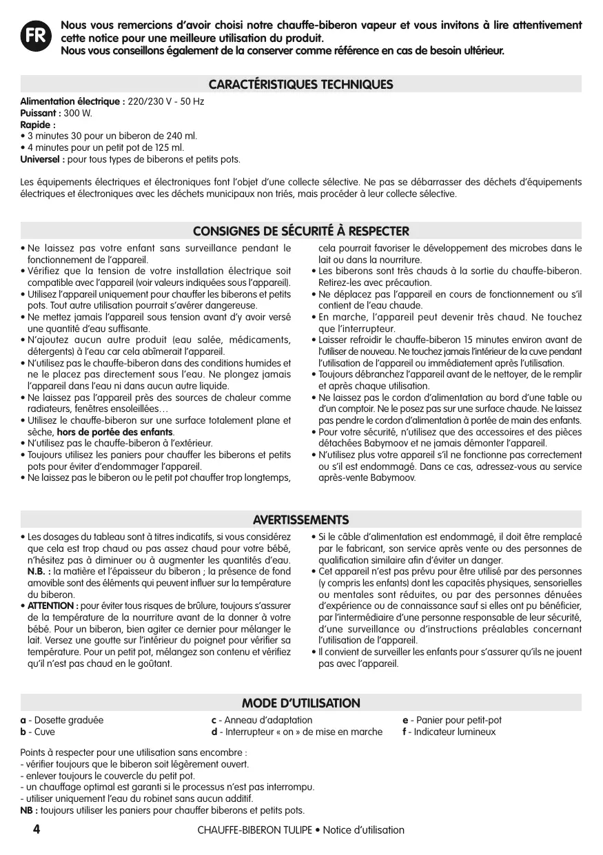 Retrouvez gratuitement la notice de l'appareil CHAUFFE BEB TULIPE BABYMOOV au format PDF.