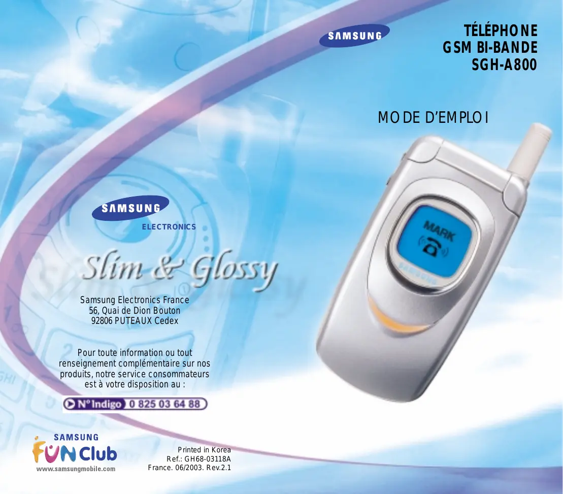Retrouvez gratuitement la notice de l'appareil SGH-A800 SAMSUNG au format PDF.