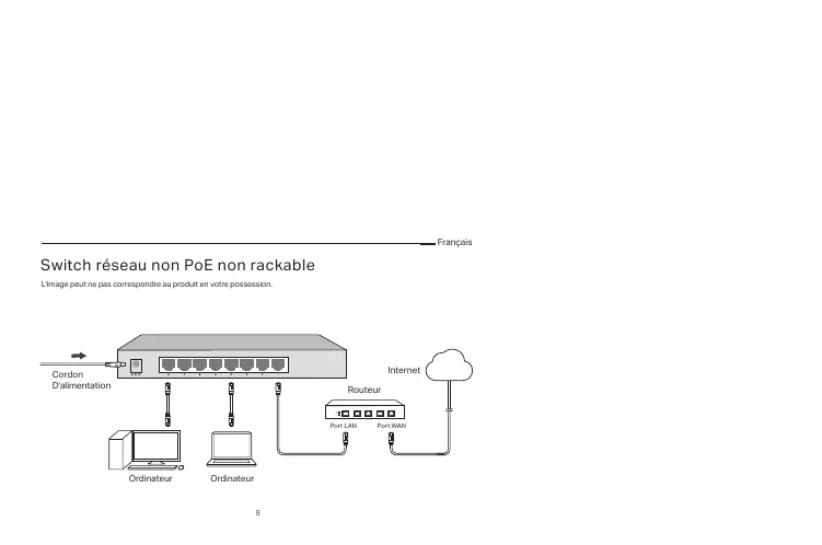 | Fonctions principales | Plug-and-play, aucune configuration requise, gestion de l'alimentation par câble (PoE) non supportée |
