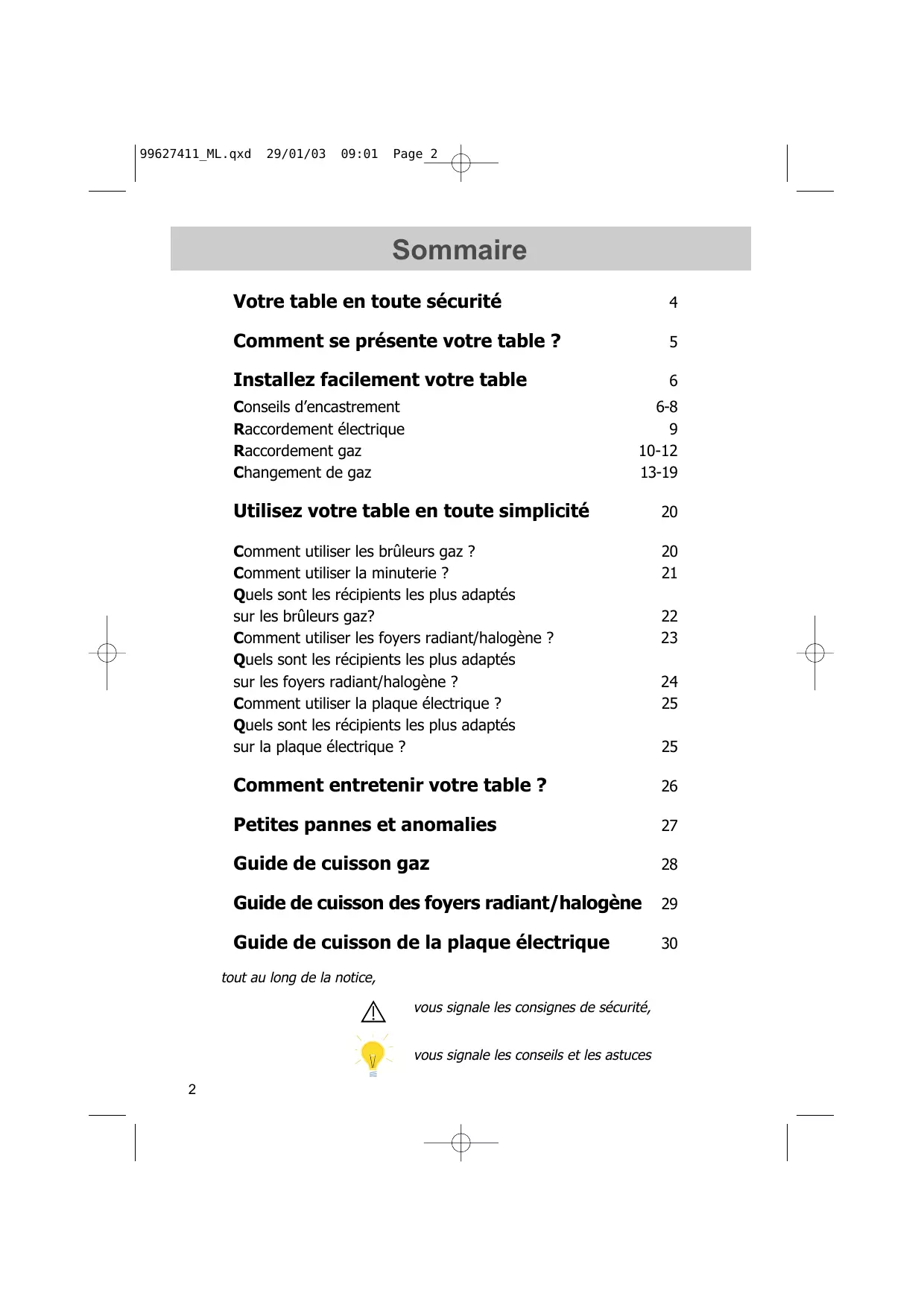 Sommaire Votre table en toute sécurité