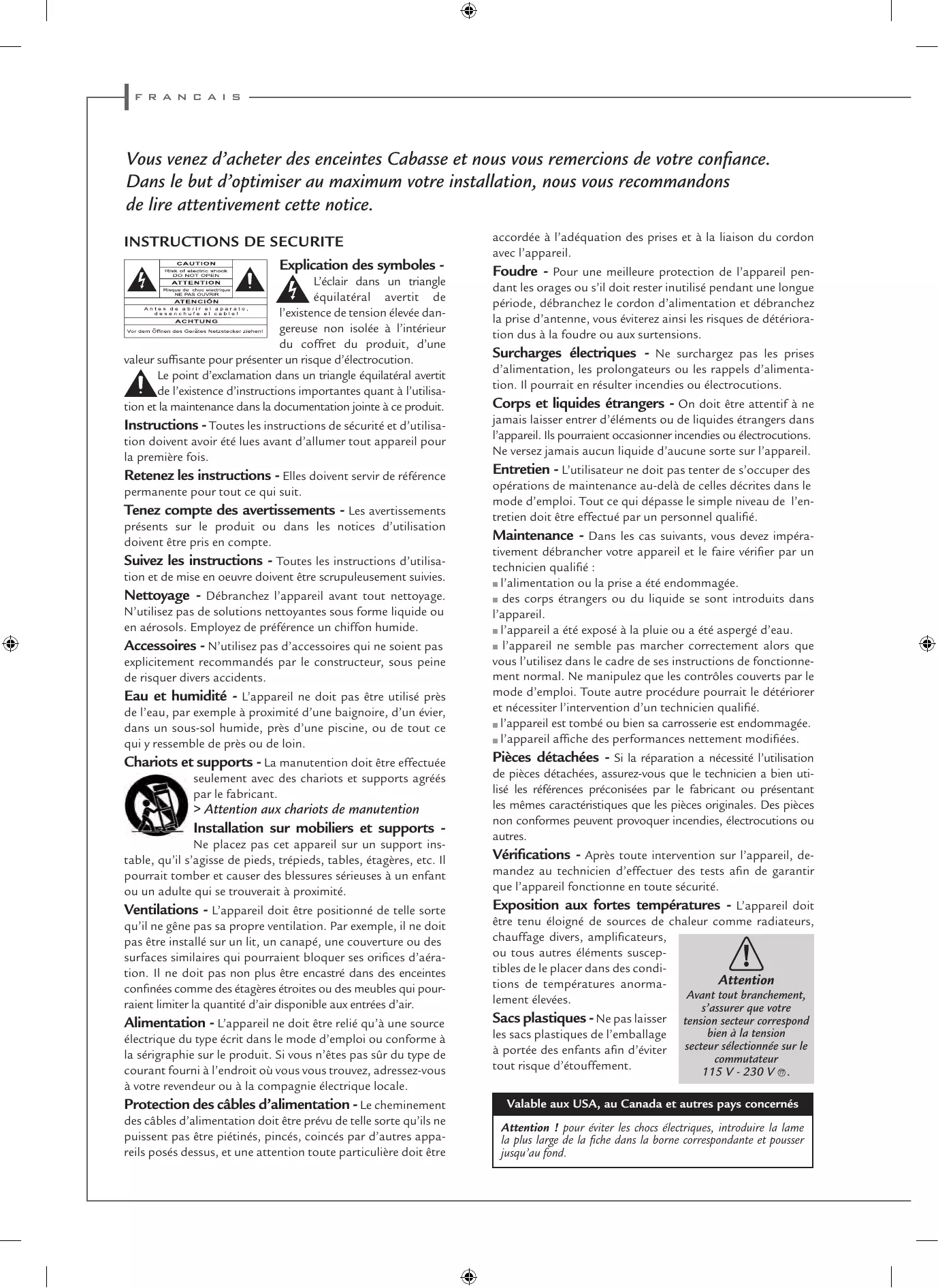 Amplificateur / Amplifier / Verstäker ORION francais Vous venez d’acheter des enceintes Cabasse et nous vous remercions de votre confiance. Dans le but d’optimiser au maximum votre installation, nous vous recommandons de lire attentivement cette notice.