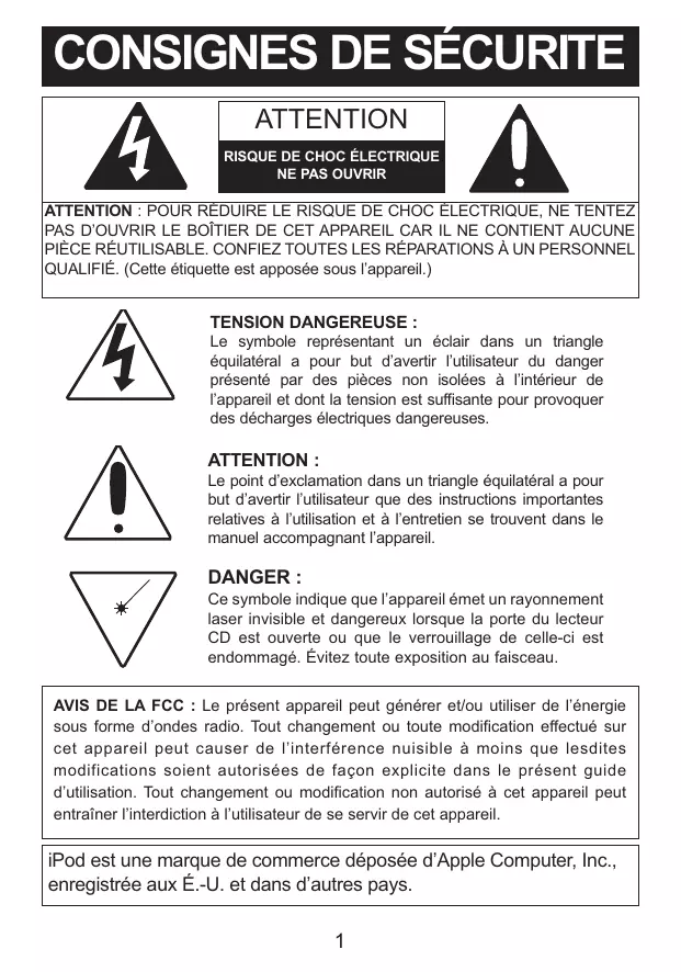 iPod est une marque de commerce déposée d'Apple Computer, Inc., enregistrée aux É.-U. et dans d'autres pays.