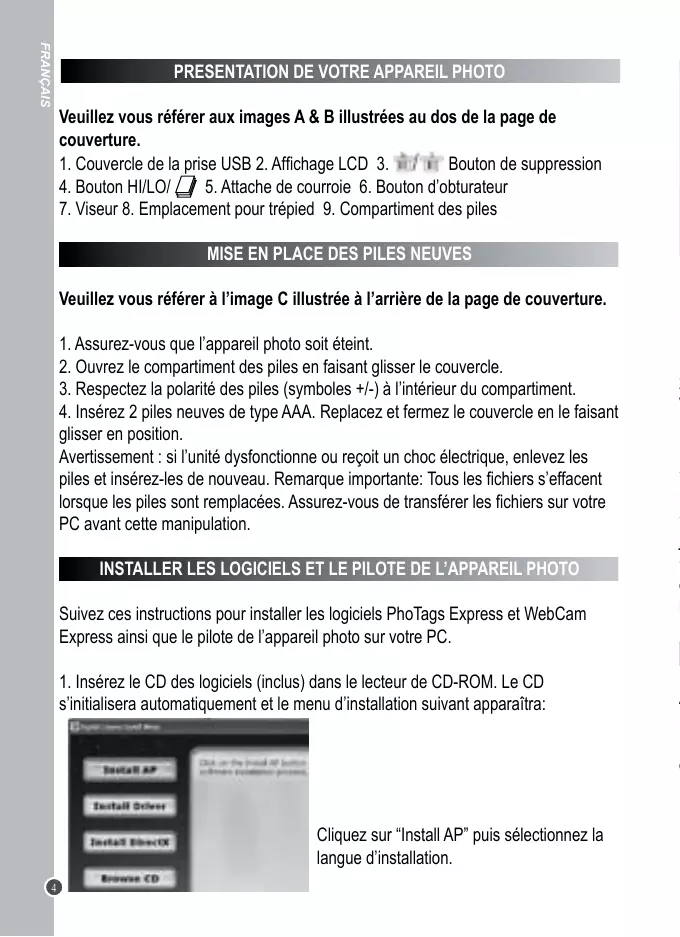 | Alimentation | Piles ou batterie rechargeable (non précisé) |