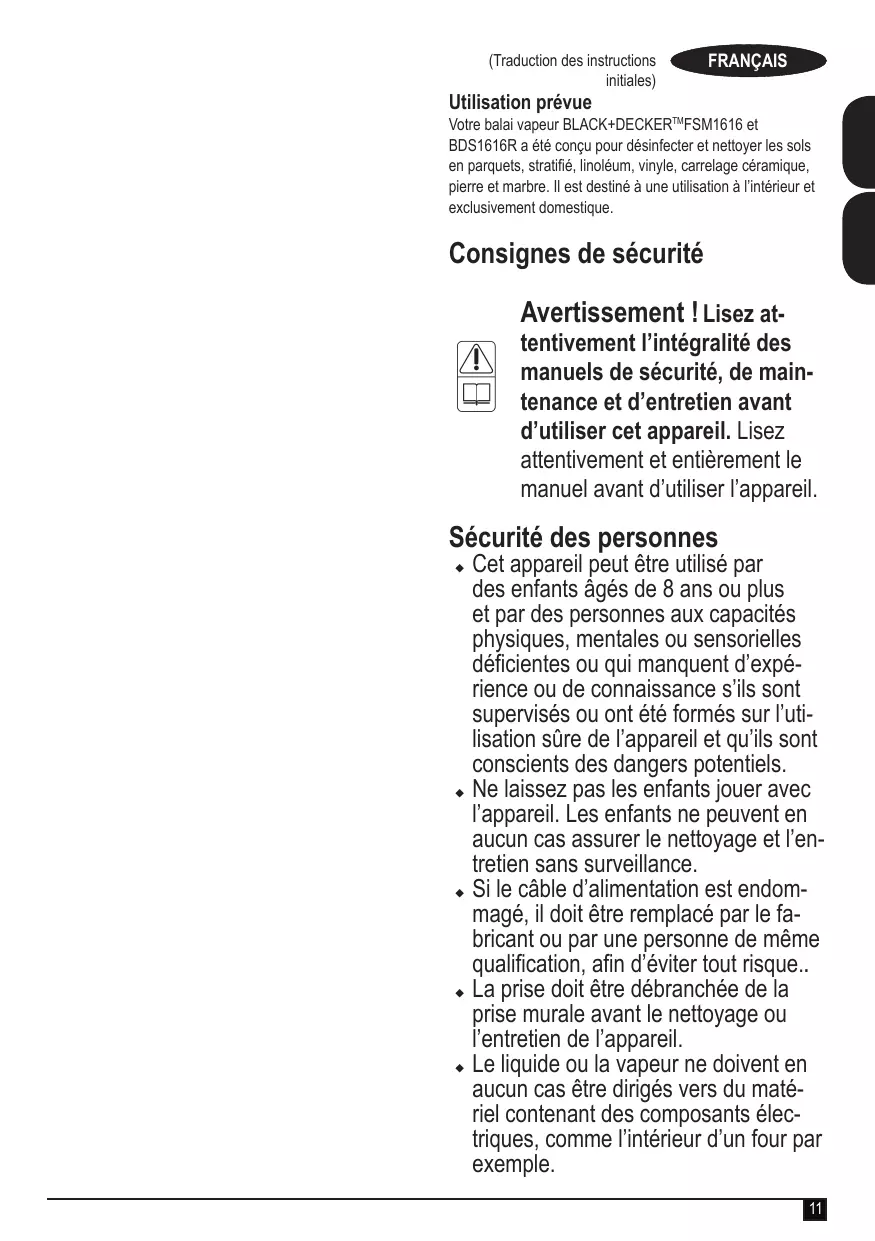 MODE D'EMPLOI FSM1616 BLACK & DECKER