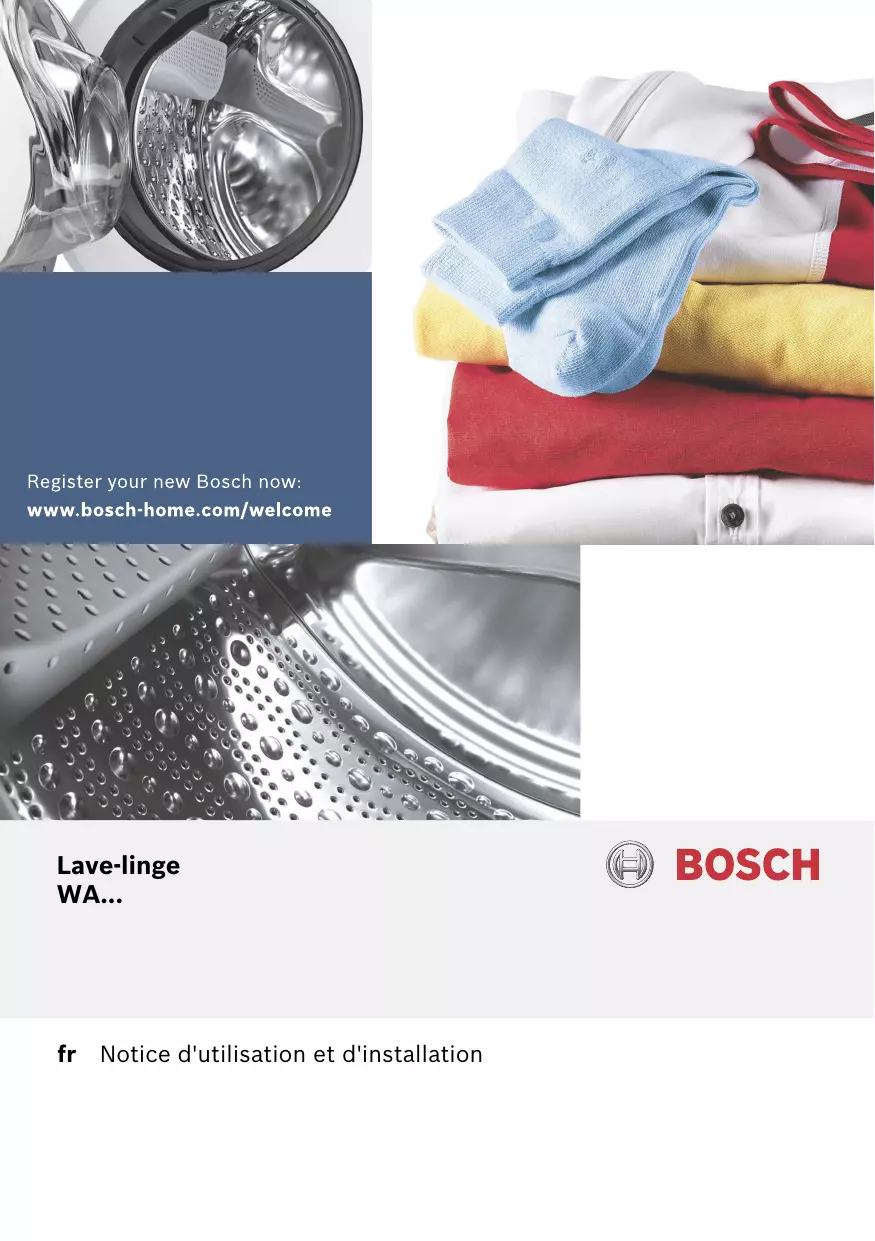 Notice d'utilisation et d'installation Votre nouveau lave-linge Règles de présentation Vous avez opté pour un lave-linge de marque Bosch. : Avertissement ! Prenez quelques minutes pour consulter cette documentation et découvrir les avantages de votre lave-linge. Conformément à la politique de qualité de la marque Bosch, nous soumettons chaque lave-linge qui quitte notre usine à des contrôles minutieux afin de garantir son bon état et son bon fonctionnement. Pour plus d'informations sur nos produits, nos accessoires, nos pièces de rechange et nos services, consultez notre site Internet www.boschhome.com ou adressez-vous à nos centres de service après-vente. Si la notice d'installation et d'utilisation porte sur différents modèles, les différences sont indiquées là où cela est nécessaire. L'association de ce symbole et de ce mot indique une situation potentiellement dangereuse. En cas de non-observation, risques de blessures voire de mort. Attention ! Ce mot indique une situation potentiellement dangereuse. En cas de non-observation, risques de dégâts matériels et/ou d'atteinte à l'environnement. Remarque/astuce Indications permettant d'utiliser l'appareil au mieux et autres informations utiles.