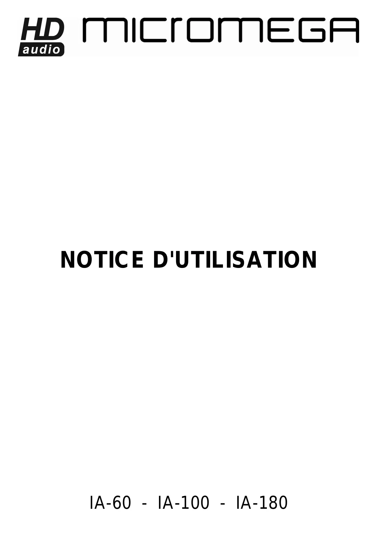 IA 60 NOIR - Amplificateur audio MICROMEGAS - Notice d'utilisation et mode d'emploi gratuit