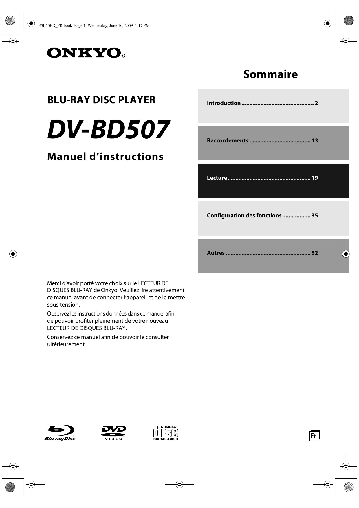 MODE D'EMPLOI DV-BD507 ONKYO