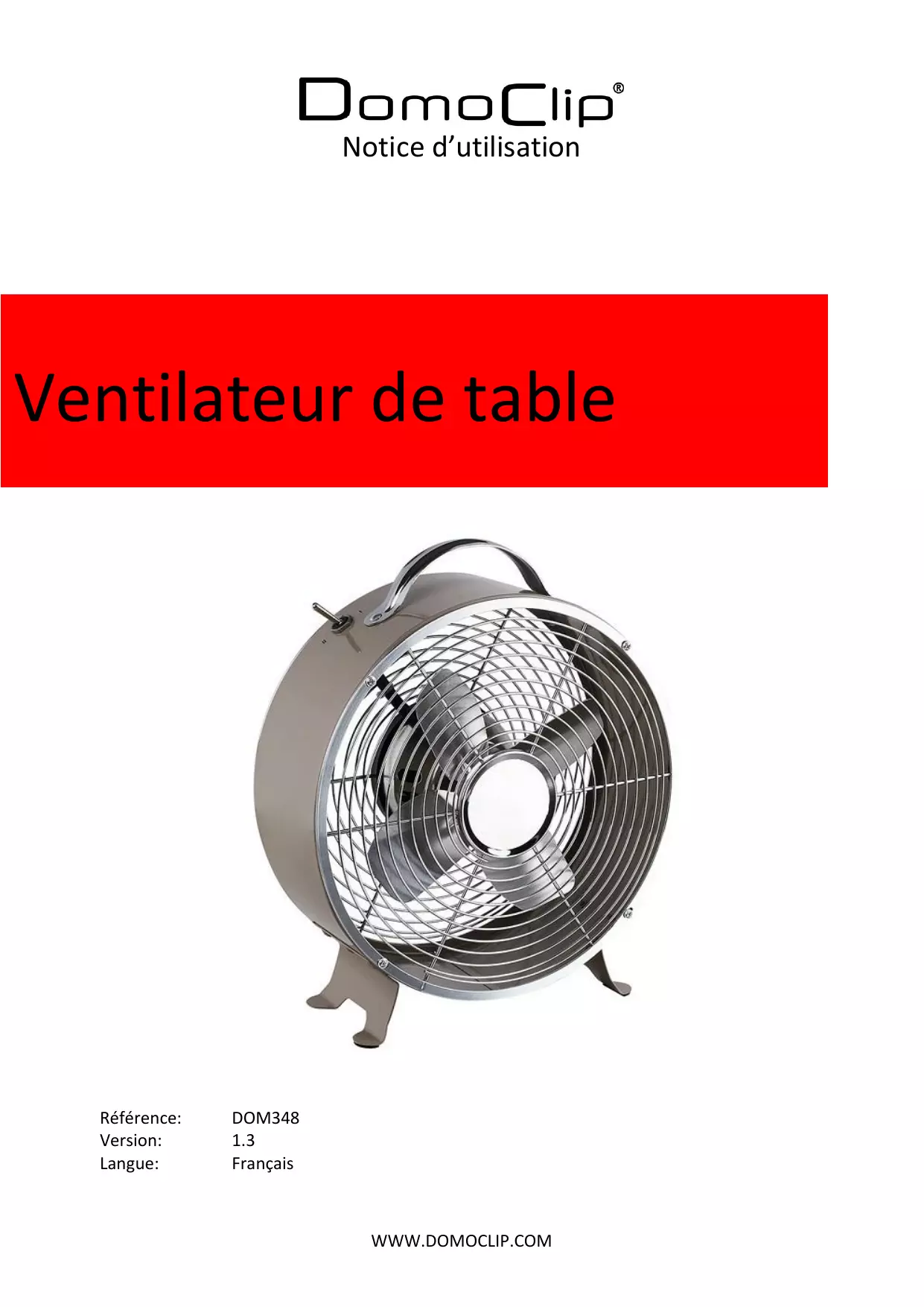 Notice d’utilisation Ventilateur de table Référence: Version: Langue: DOM348 Français