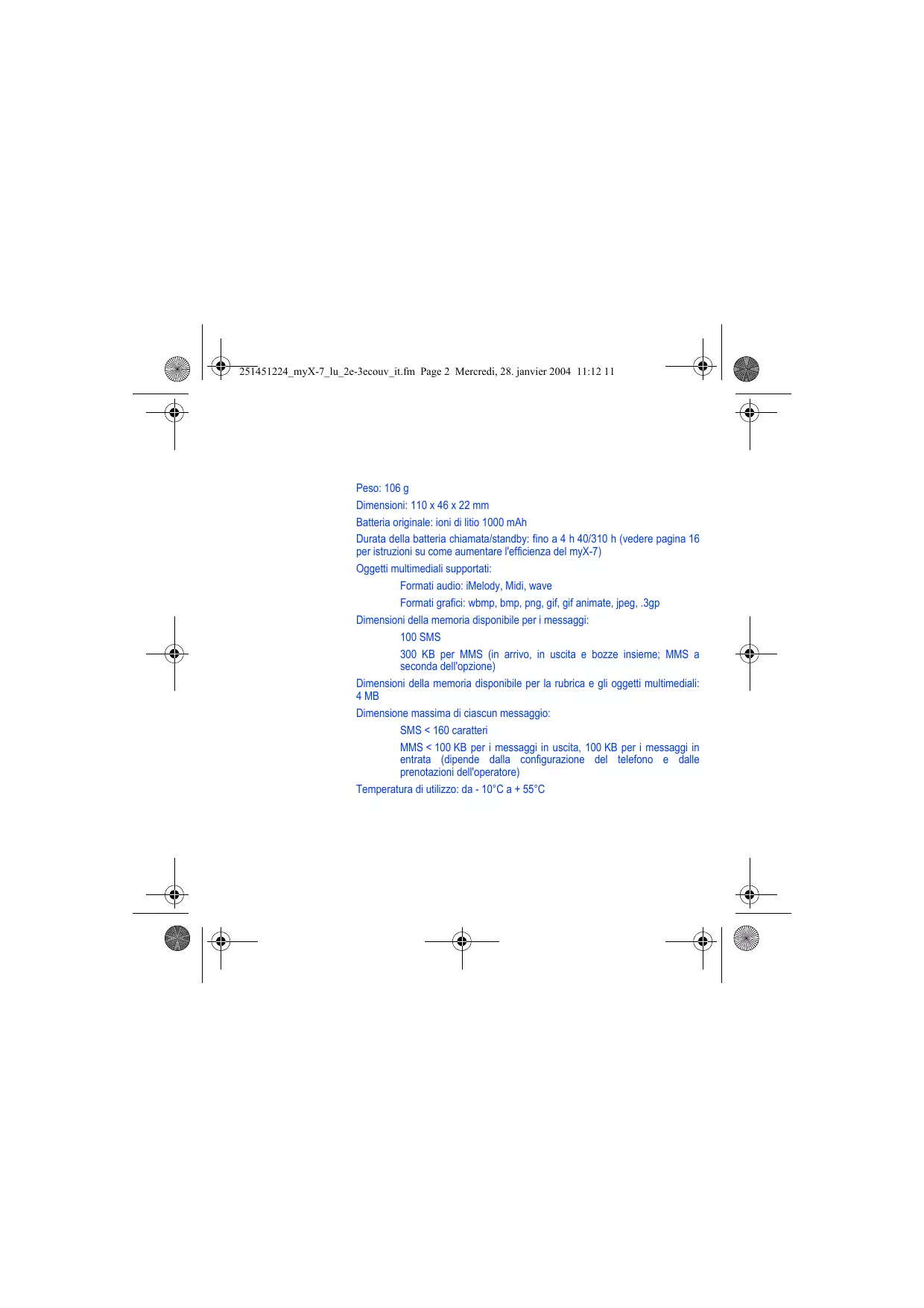 MODE D'EMPLOI myX-7_lu_2e-3ecouv_it.fim SAGEM