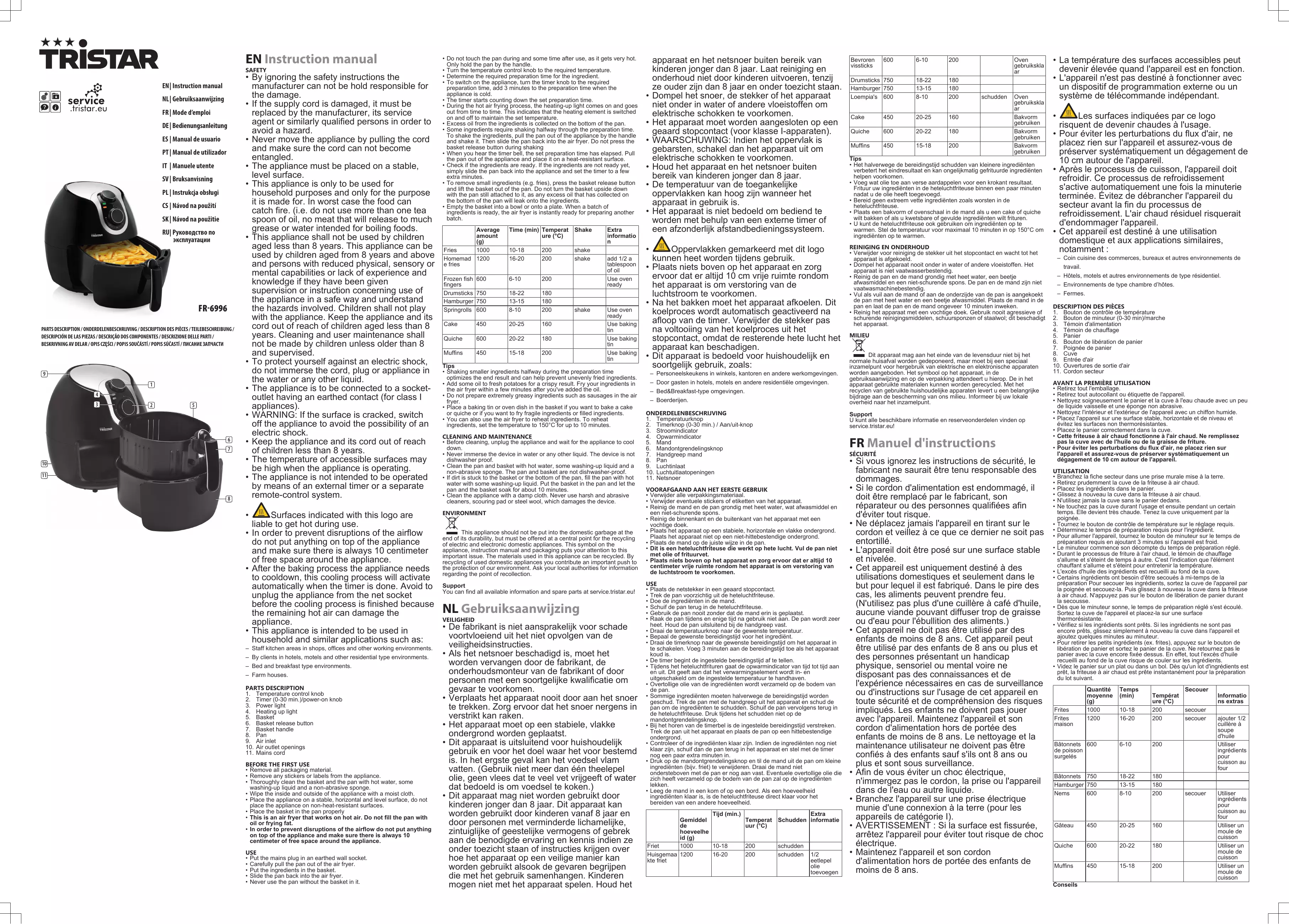FR-6996 - Friteuse TRISTAR - Notice d'utilisation et mode d'emploi gratuit