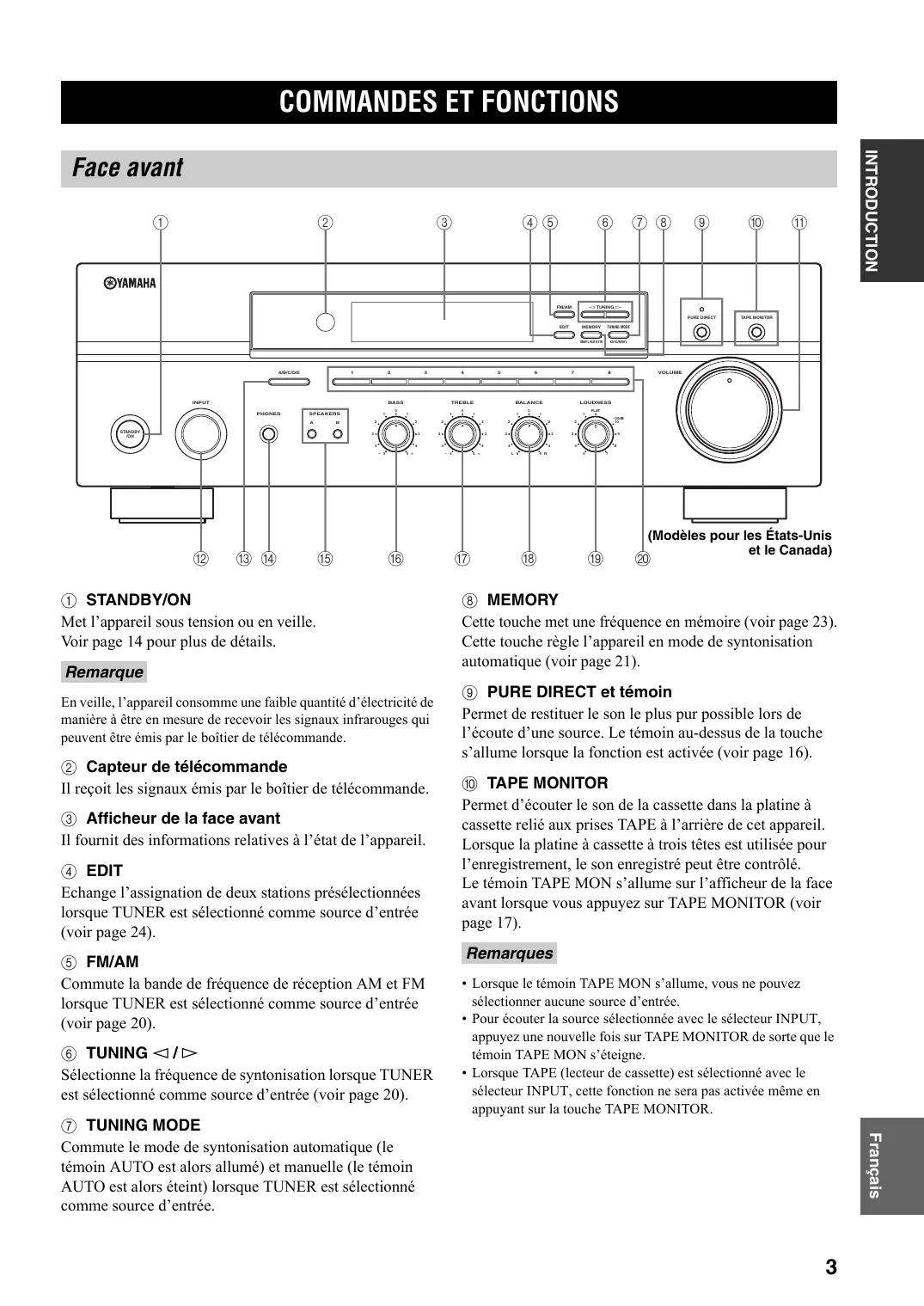 ◆ Commutateur PURE DIRECT pour la reproduction la plus fidèle possible d’une source sonore ◆ Contrôle variable de l’intensité sonore en continu ◆ Minuterie de mise hors service ◆ Commande à distance possible
