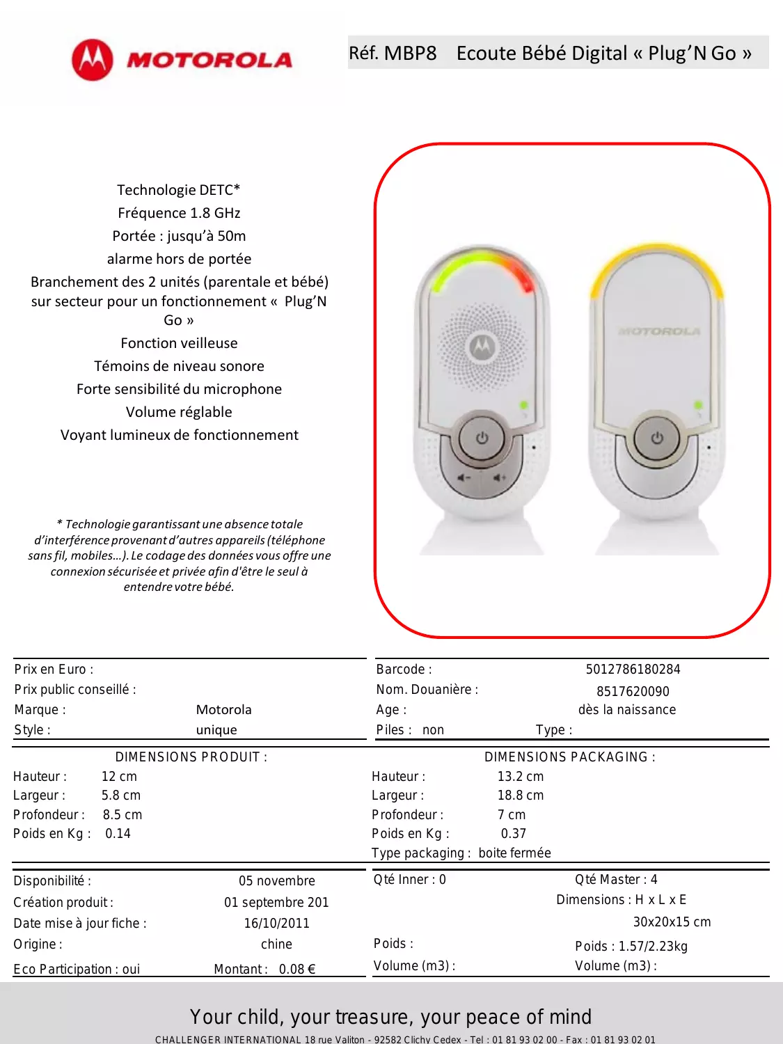 MBP8 PLUG N GO - Babyphone MOTOROLA - Notice d'utilisation et mode d'emploi gratuit