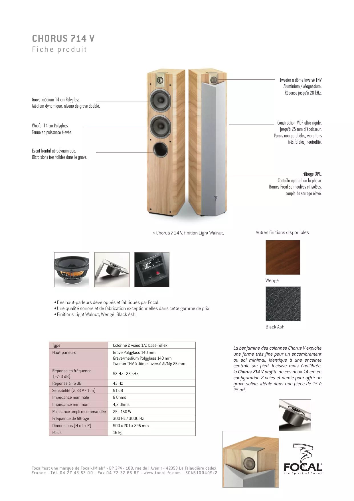CHORUS 714V WALNU/X1 - Enceinte acoustique FOCAL - Notice d'utilisation et mode d'emploi gratuit