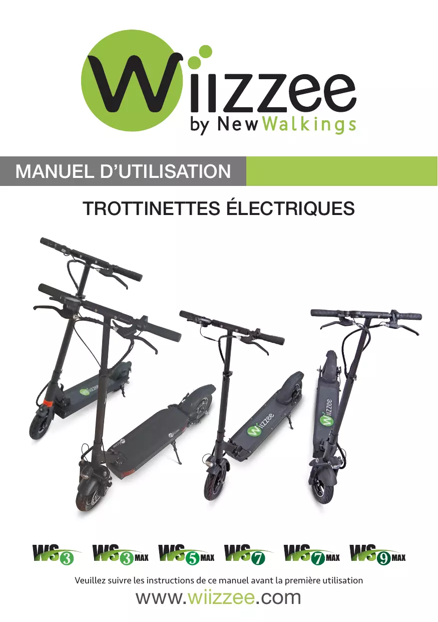TROTTINETTES ÉLECTRIQUES Veuillez suivre les instructions de ce manuel avant la première utilisation www.wiizzee.com Manuel d’utilisation traduit et adapté de l’anglais par : Produit distribué exclusivement en france par : Mise à jour Juillet 2019
