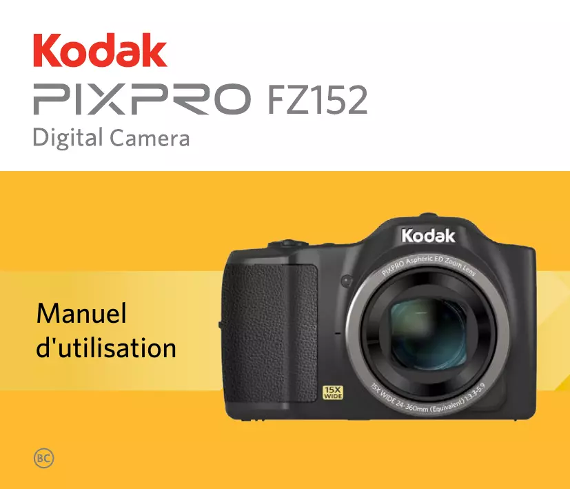 Téléchargez la notice de votre Appareil photo numérique au format PDF gratuitement ! Retrouvez votre notice FZ152-BK - KODAK et reprennez votre appareil électronique en main. Sur cette page sont publiés tous les documents nécessaires à l'utilisation de votre appareil FZ152-BK de la marque KODAK.