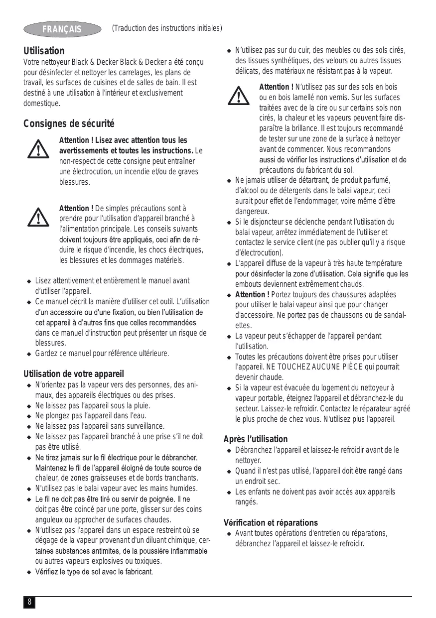 MODE D'EMPLOI FSS1600 BLACK & DECKER
