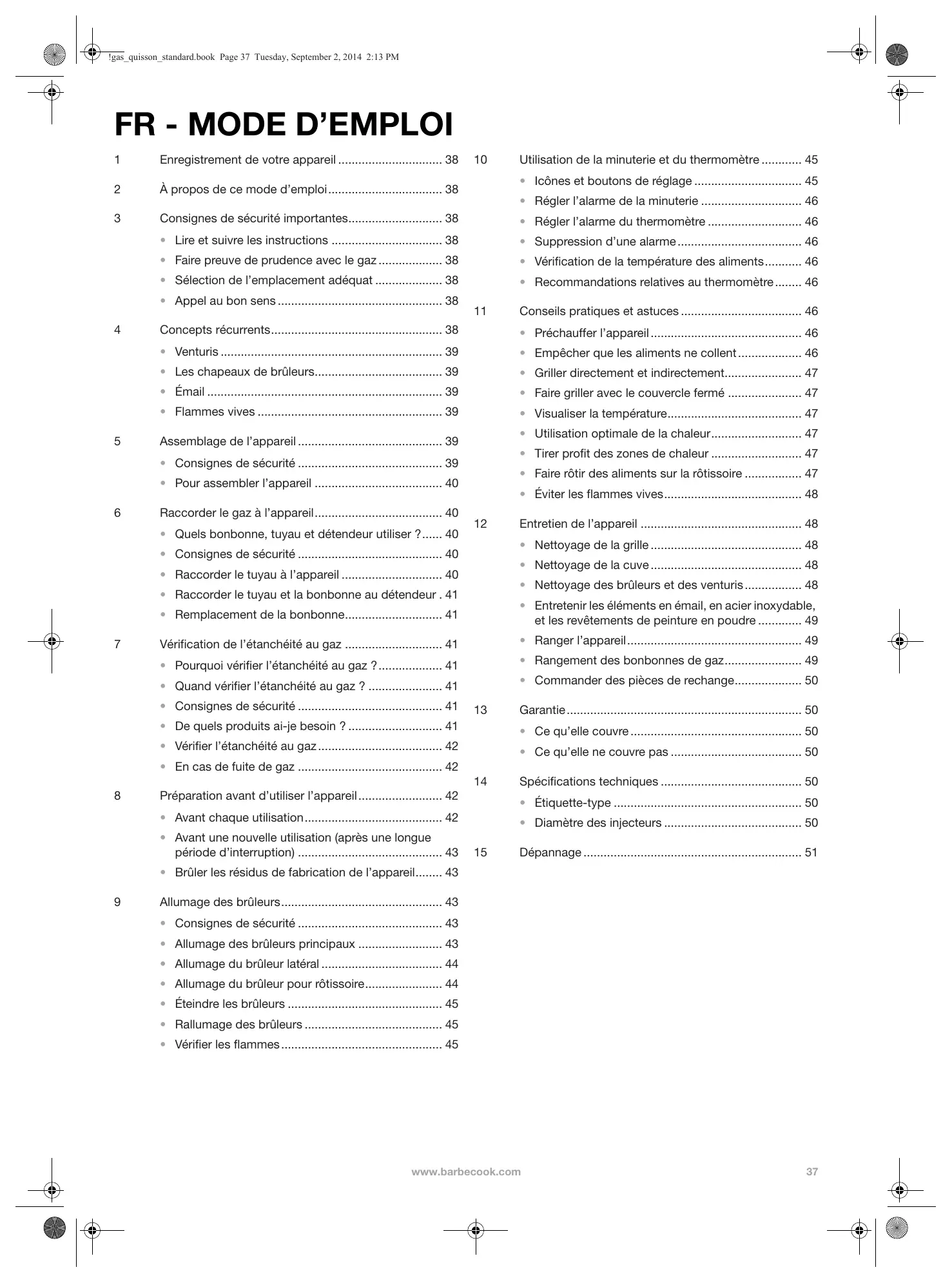 Lire et suivre les instructions 38 Faire preuve de prudence avec le gaz 38 - Sélection de l'emplacement ajustat 38 Appel au bon sens 38