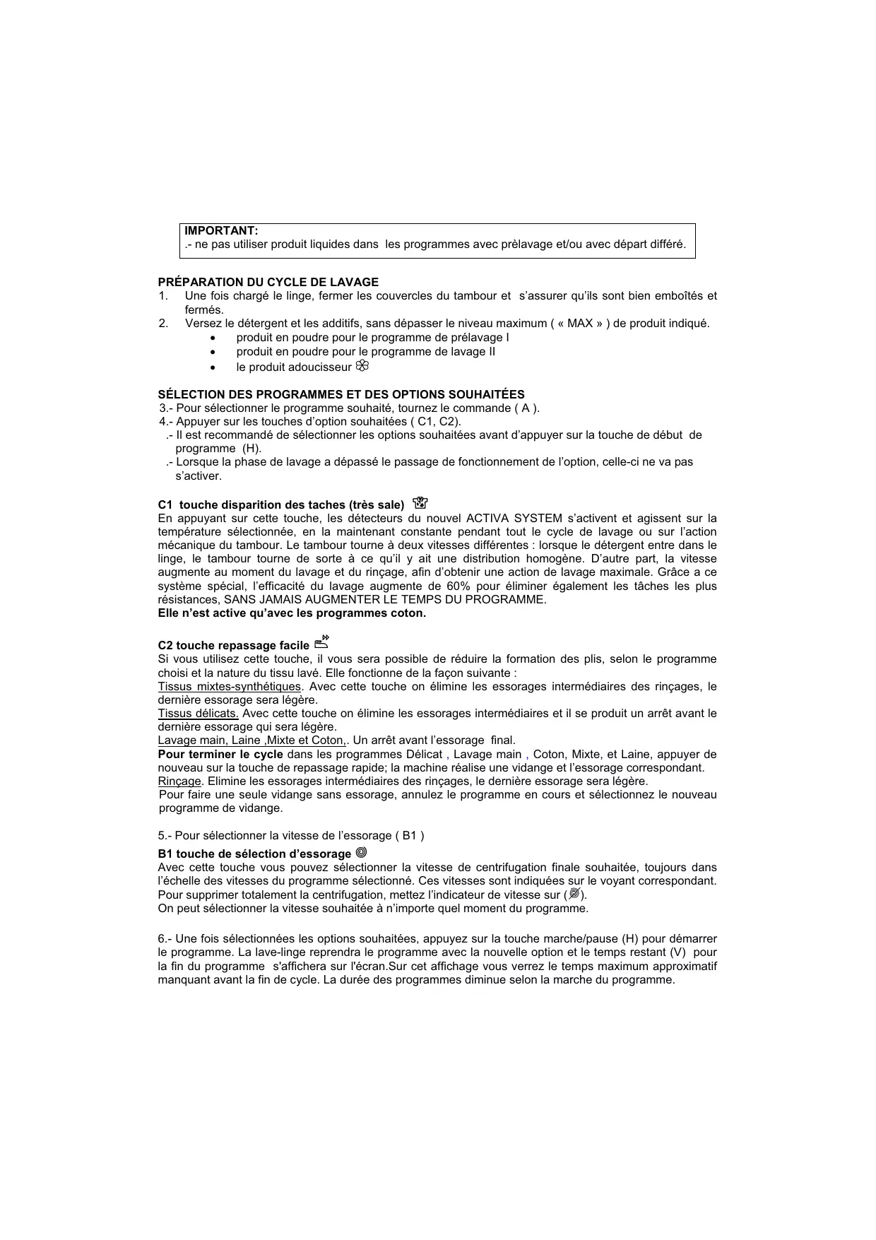 - Ne pas utiliser produits liquides dans les programmes avec prélavage et/ou avec départ différé.