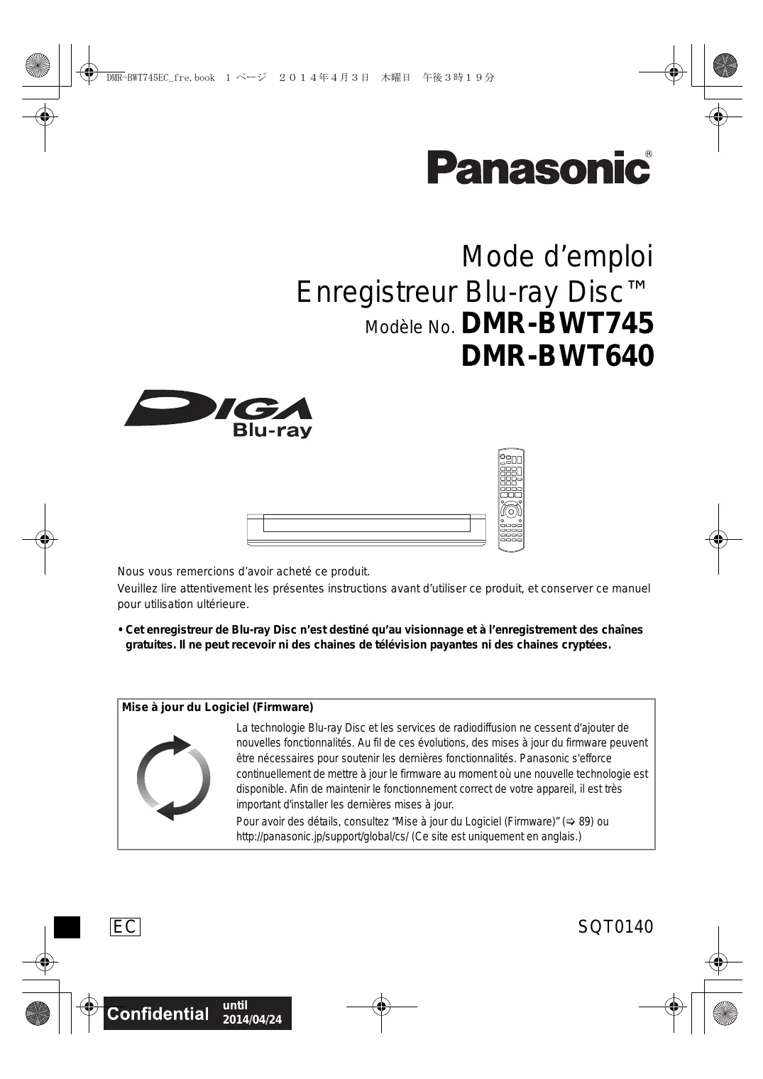 Retrouvez gratuitement la notice de l'appareil DMR-BWT745 PANASONIC au format PDF.