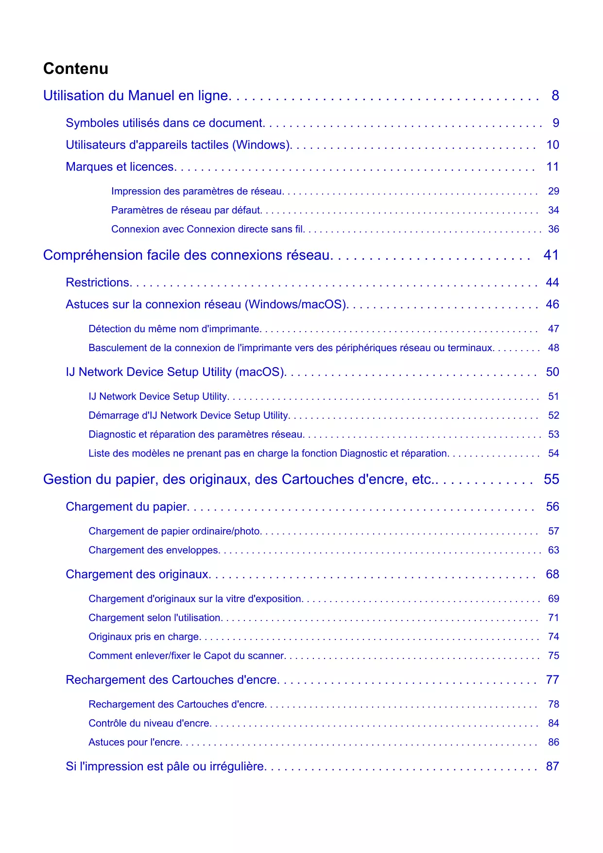 Gestion du papier, des originaux, des cartouches d'encre, etc. 55
