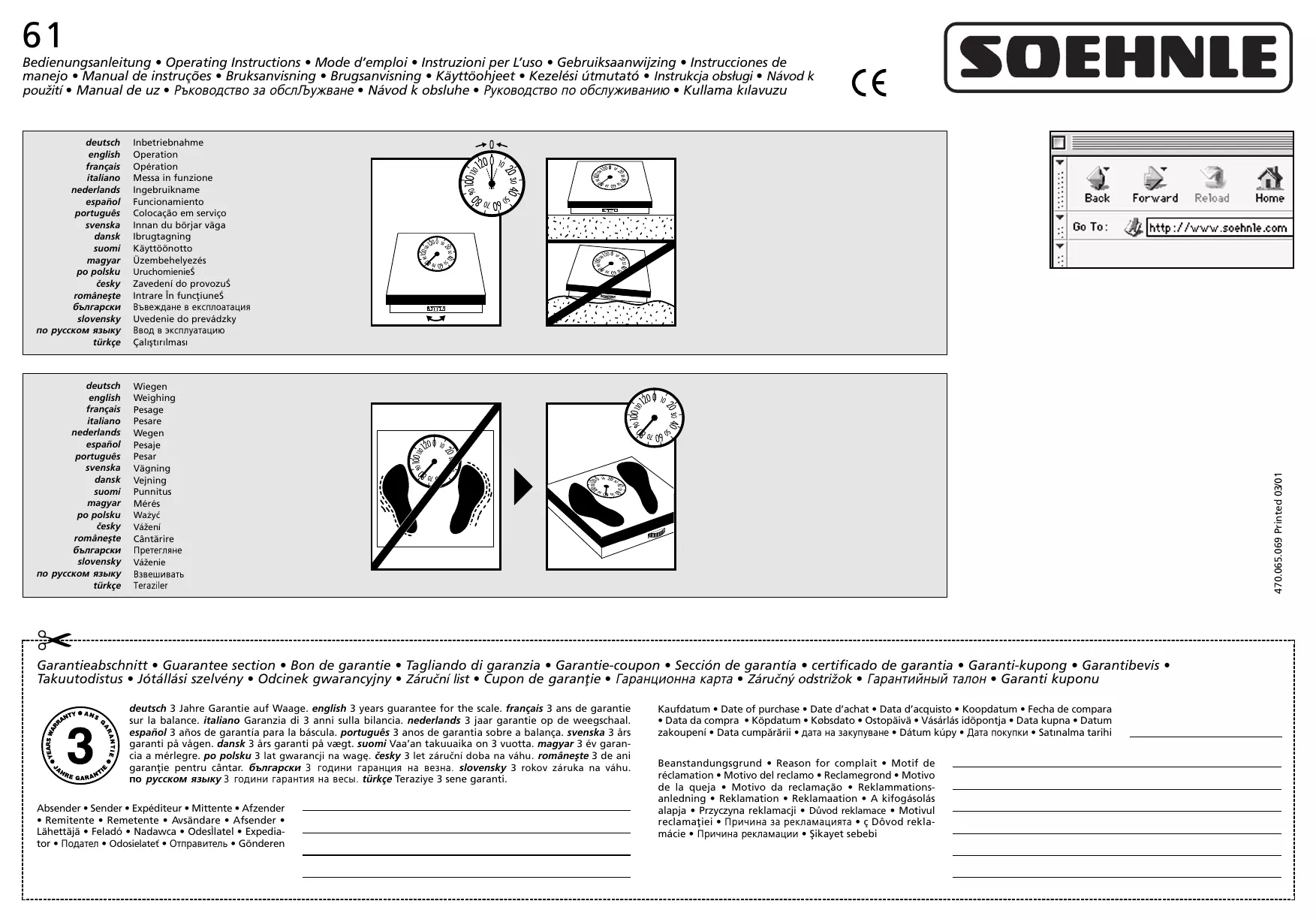 61210 - Balance de pesage SOEHNLER - Notice d'utilisation et mode d'emploi gratuit