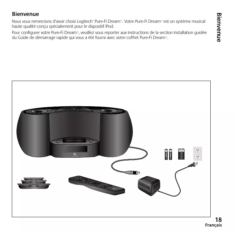Nos remercions d'avoir choisi Logitech® Pure-Fi Dream™. Votre Pure-Fi Dream™ est un système musical haute qualité conçu spécialement pour le dispositif iPod.
