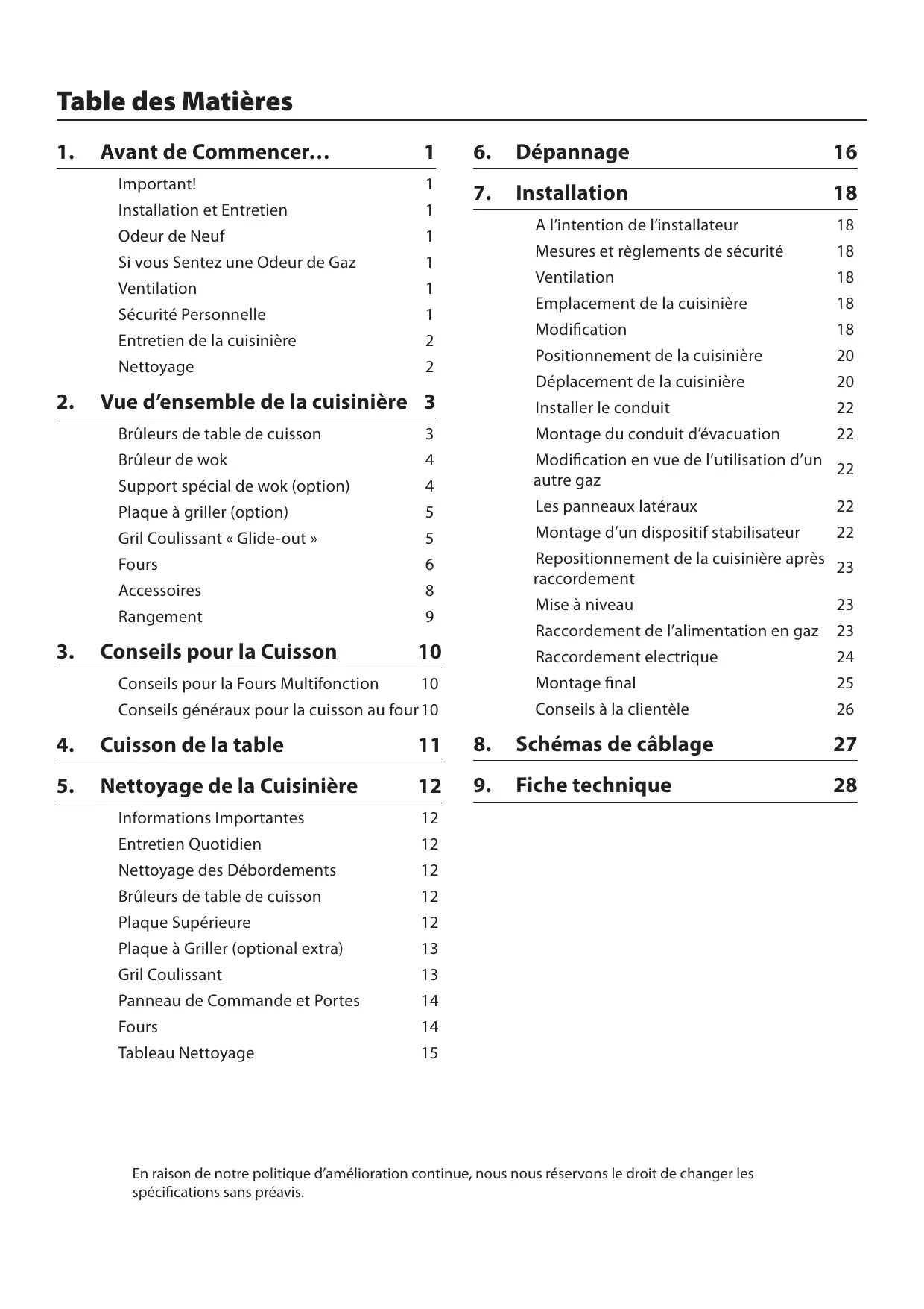 Nous vous remercions d'avoir acheté cette cuisinière. Installée et utilisée correctement, cette cuisinière vous donnera de nombreuses années de service fiable. Il est important de lire la présente section avant de commencer, en particulier si vous n'avez jamais utilisé de cuisinière mixte.