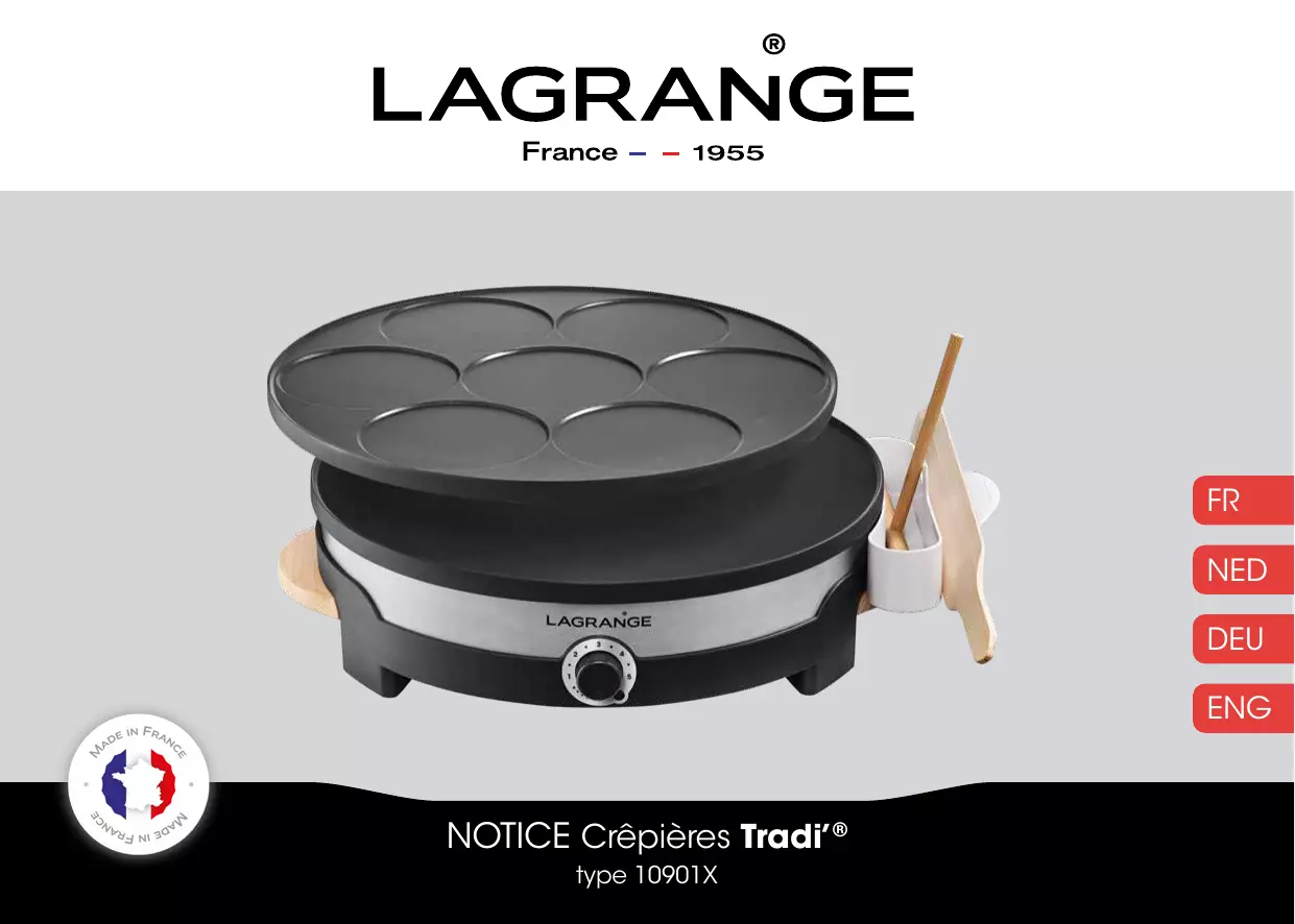 CREPIERE TRADI'® DUO - Crépière LAGRANGE - Notice d'utilisation et mode d'emploi gratuit