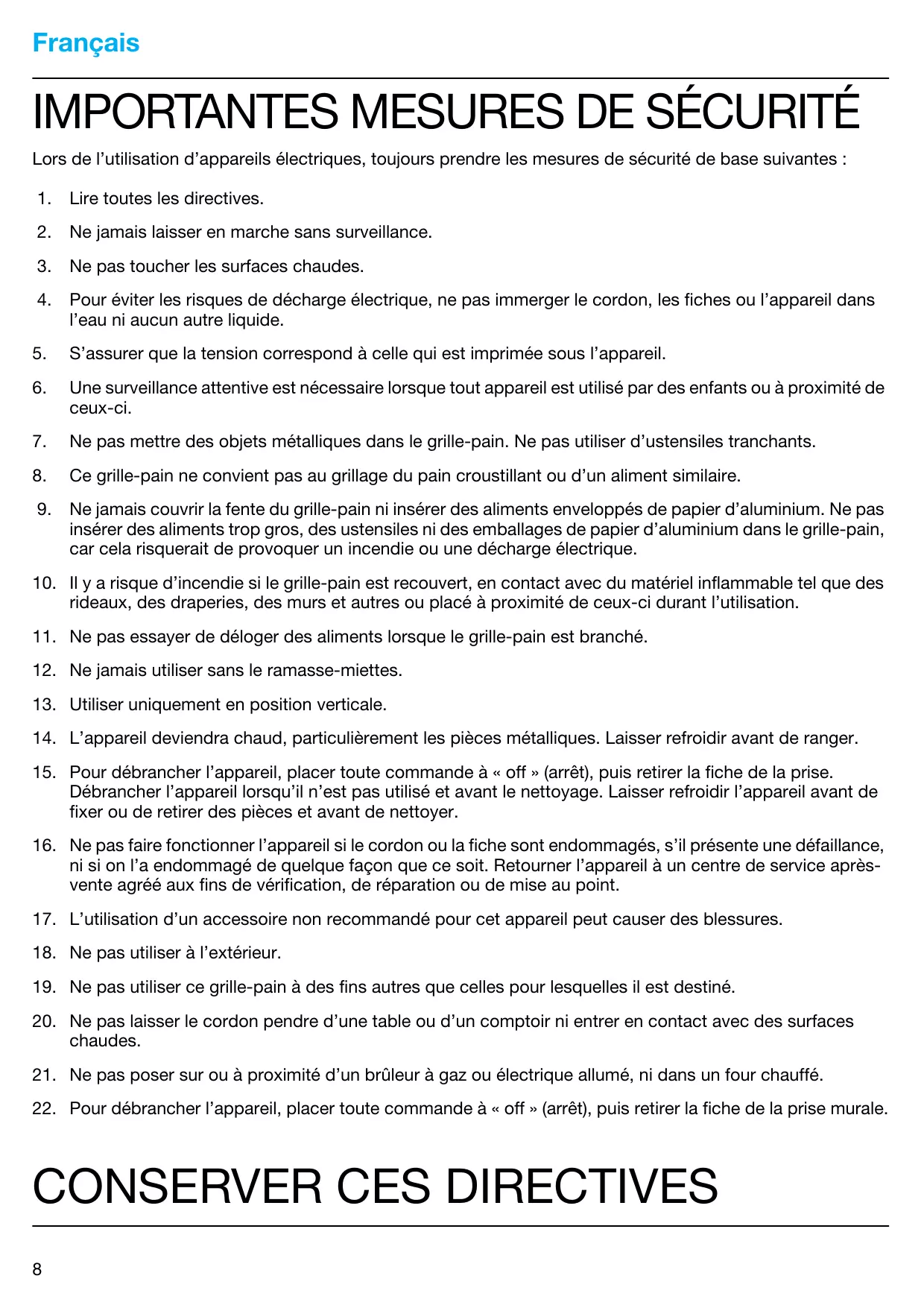 - Ne pas utiliser ce grille-pain à des fins autres que celles pour lesquelles il est destiné.