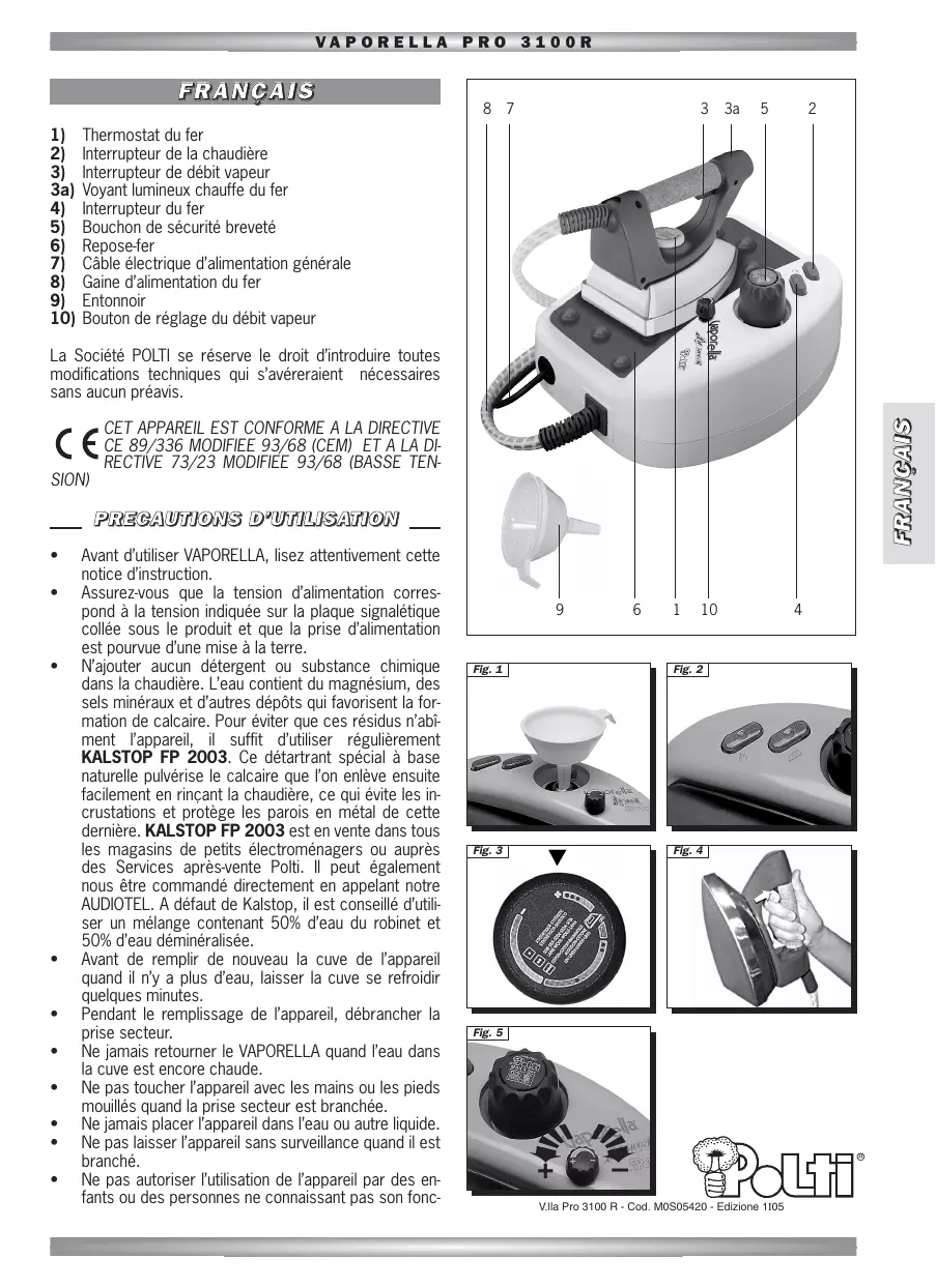 Retrouvez gratuitement la notice de l'appareil PRO 3100 R VAPORETTO au format PDF.