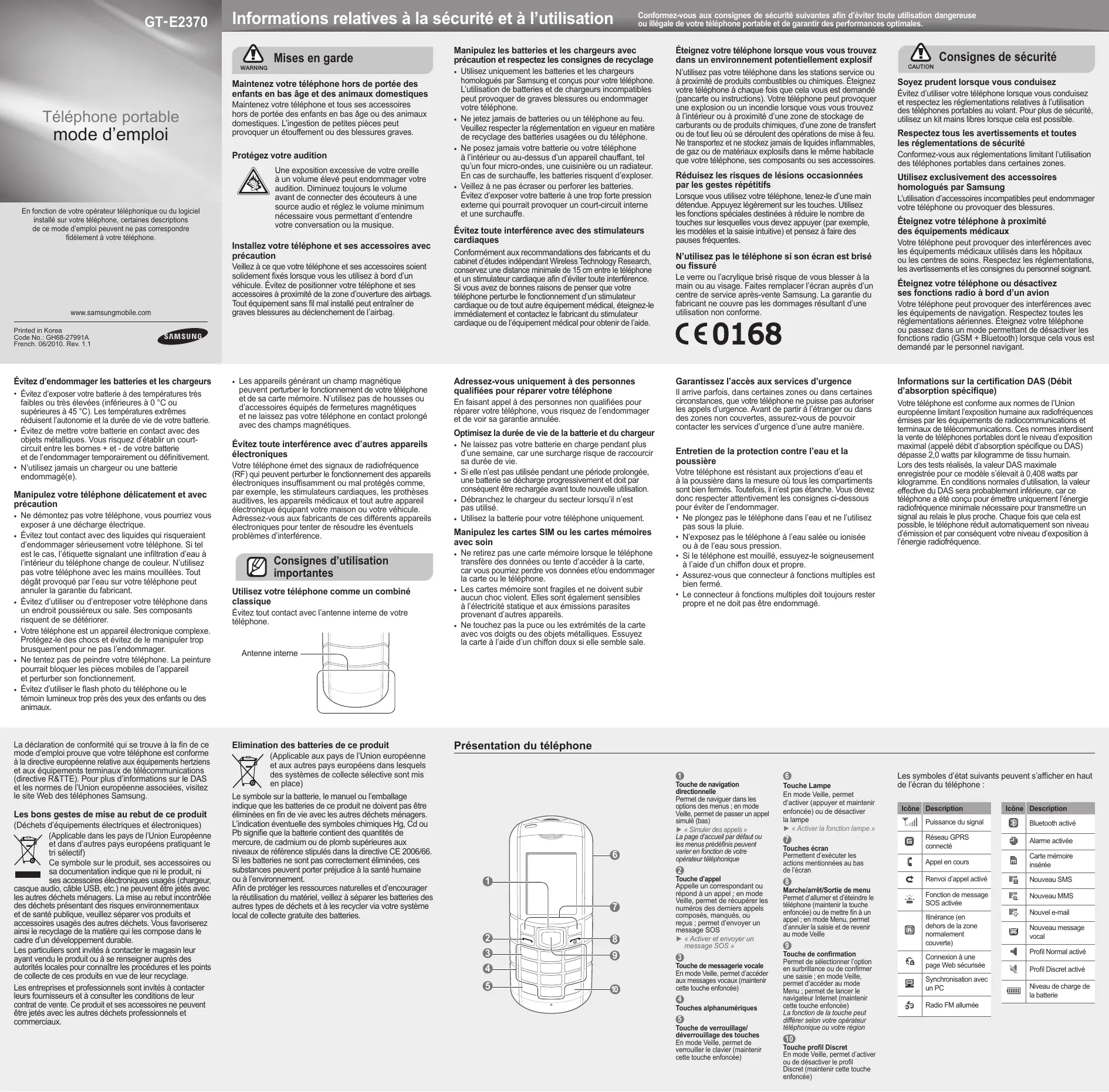 GT-E2370 - Téléphone portable SAMSUNG - Notice d'utilisation et mode d'emploi gratuit