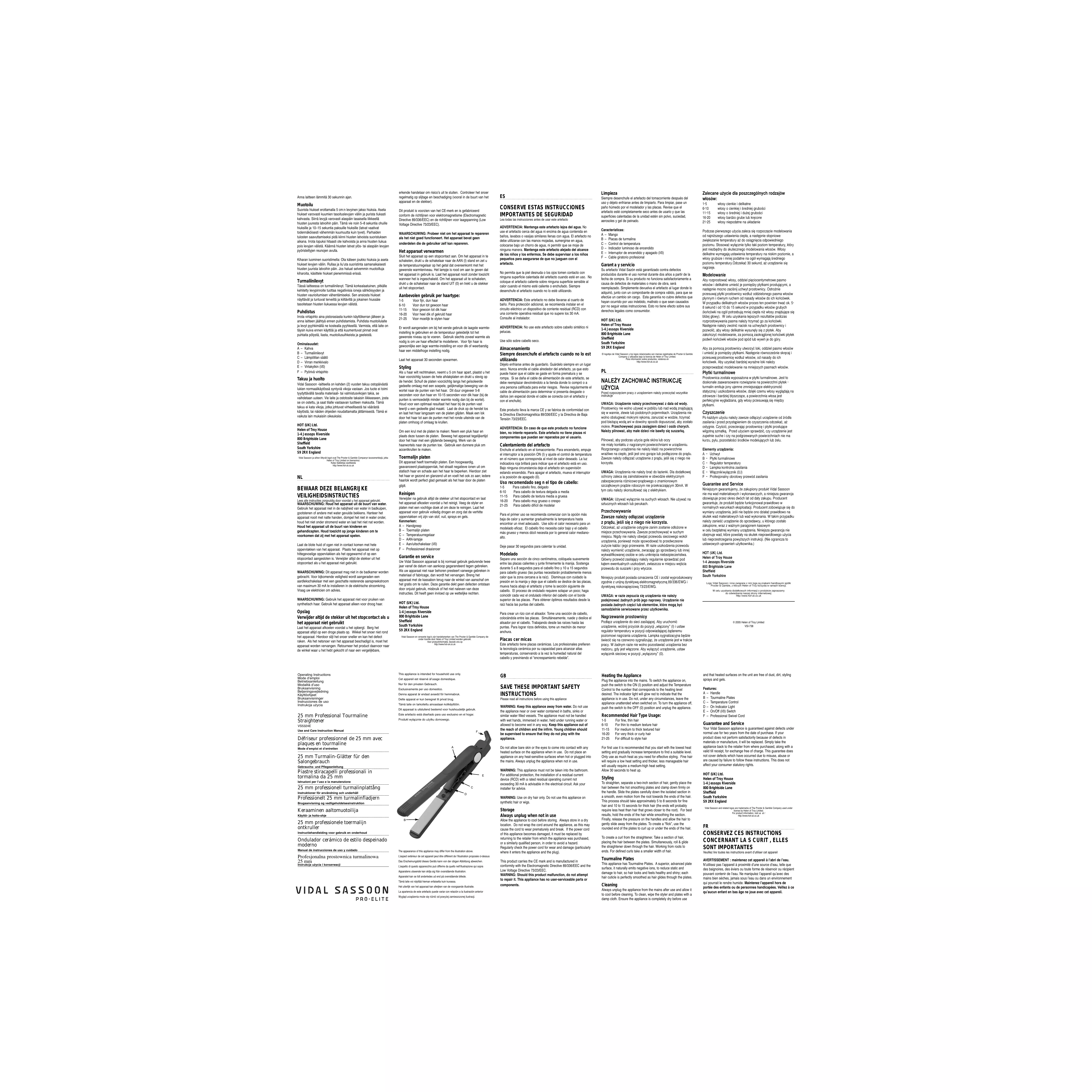 incorrecte de l'appareil ou à un non-respect des instructions. Cela ne remet pas en cause vos droits en tant que consommateur. Pour plus d'informations sur les accessoires Vidal Sassoon, vous pouvez contacter notre service client le :