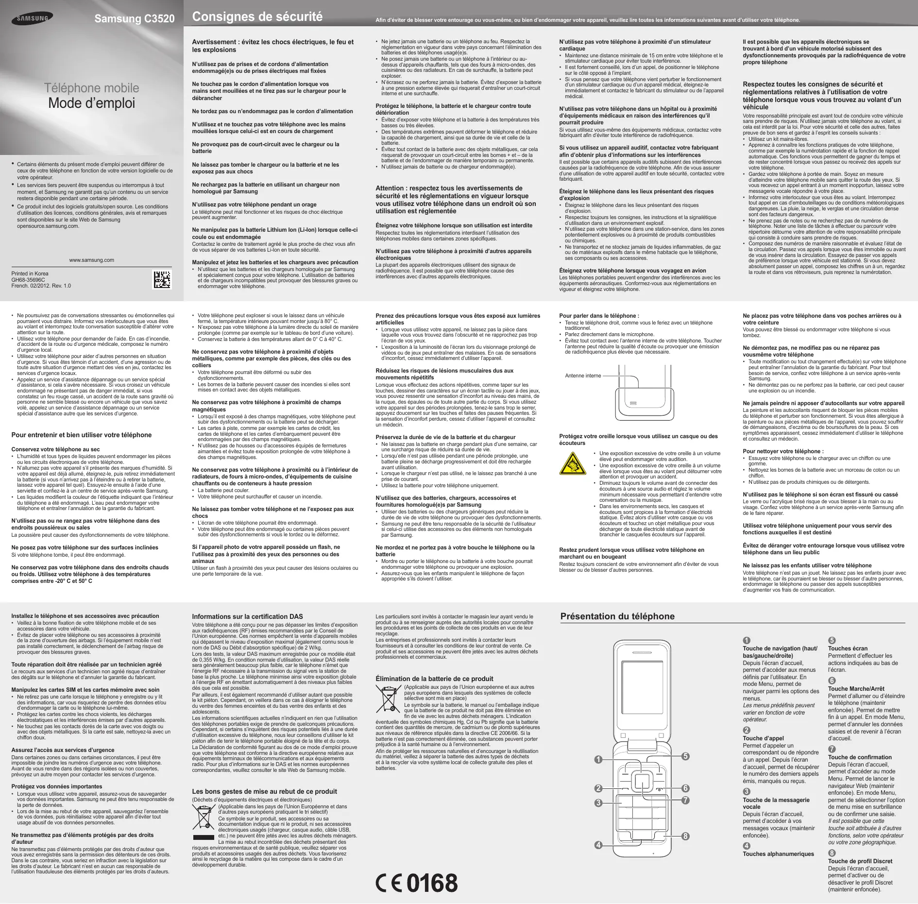 C3520 - Téléphone mobile SAMSUNG - Notice d'utilisation et mode d'emploi gratuit