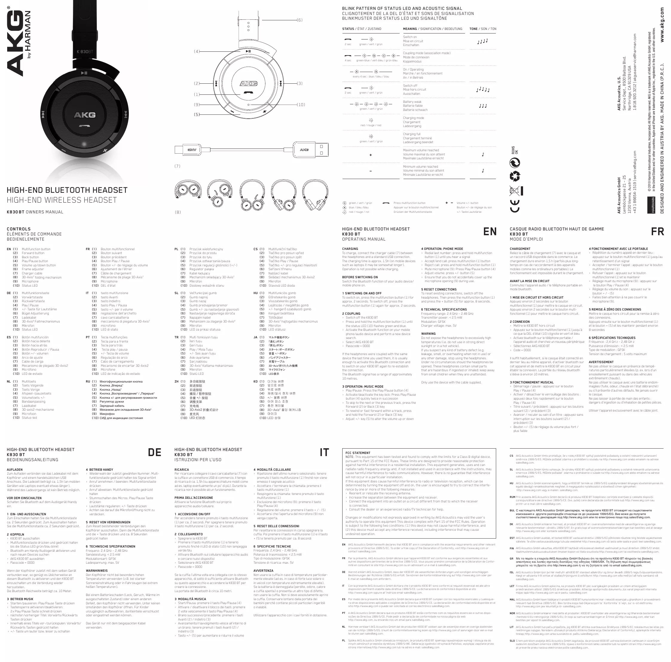 Retrouvez gratuitement la notice de l'appareil K-830BT AKG au format PDF.