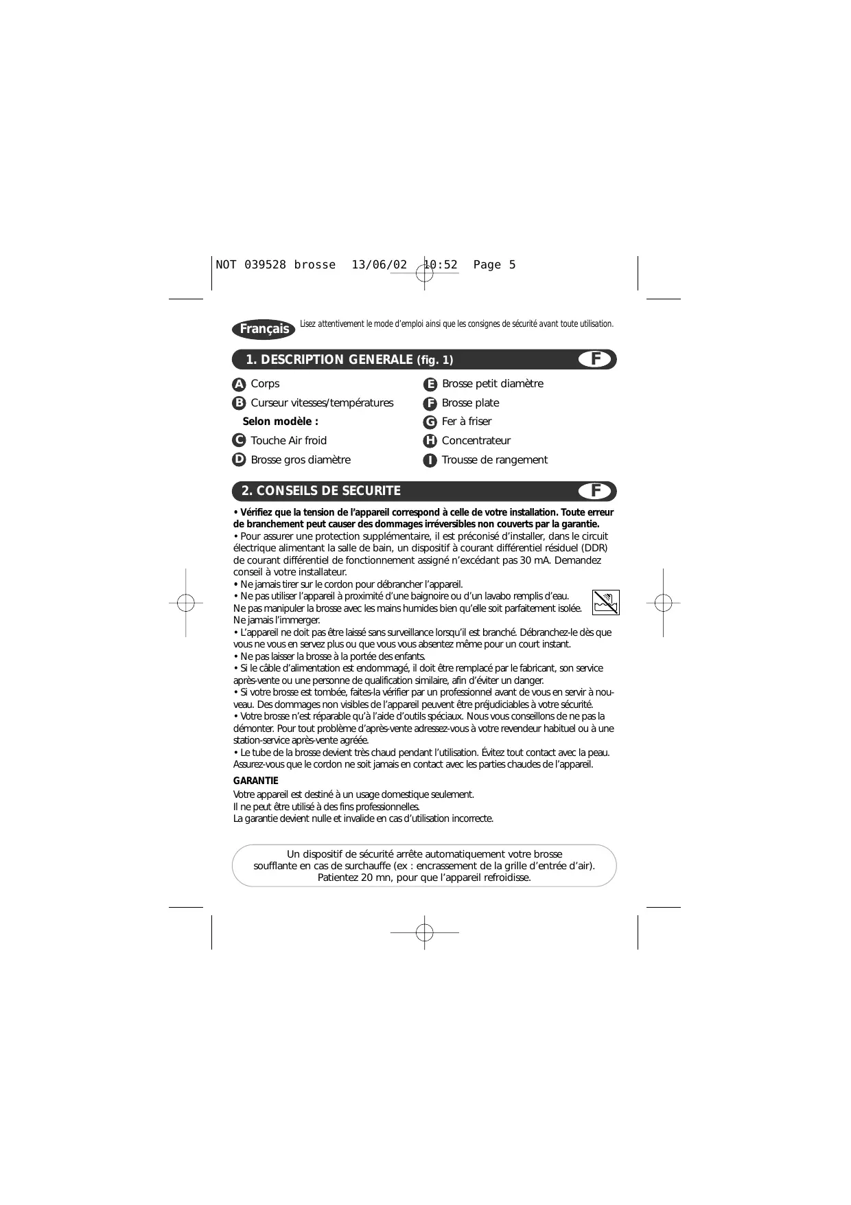9666.00 - Appareil de coiffure électrique CALOR - Notice d'utilisation et mode d'emploi gratuit