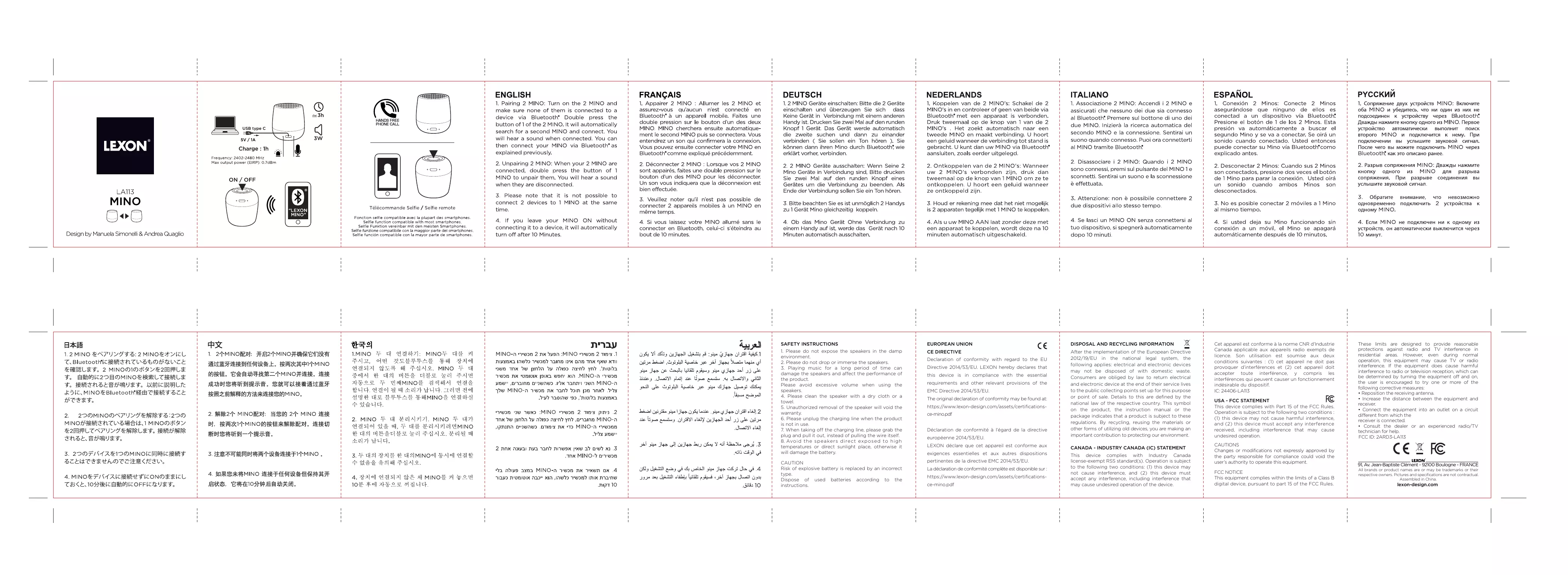 - Si vous laissiez votre MINO allumé sans le connecter en Bluetooth, celui-ci s'éteindrait au bout de 10 minutes.