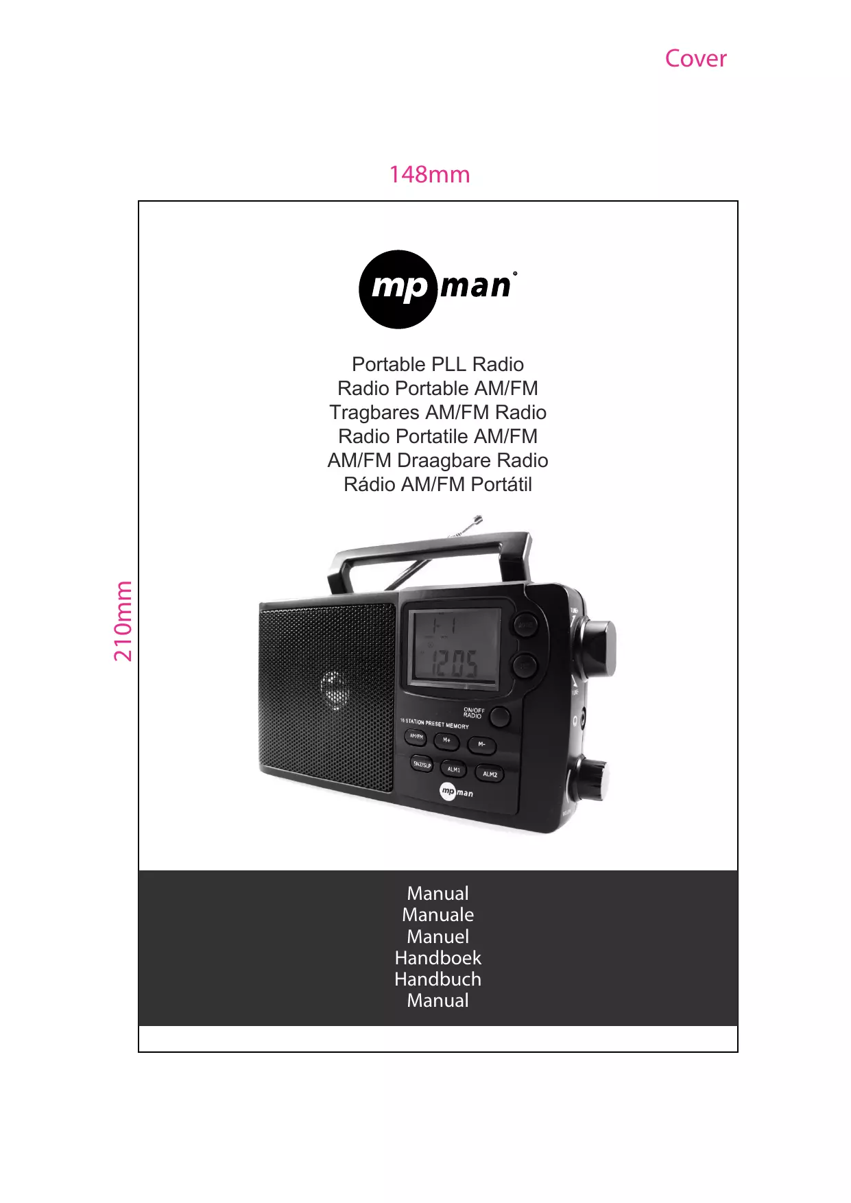 Cover 148mm 210mm Portable PLL Radio Radio Portable AM/FM Tragbares AM/FM Radio Radio Portatile AM/FM AM/FM Draagbare Radio Rádio AM/FM Portátil Manual Manuale Manuel Handboek Handbuch Manual French 148mm Radio portable AM/FM MANUEL D'UTILISATION Veuillez lire attentivement et comprendre les instructions contenues dans ce manuel avant d’utiliser l’appareil Veuillez vous référer à ce manuel en cas de doute sur les fonctions de l’appareil Conservez ces instructions pour toute consultation ultérieure. Consignes de sécurité Pour réduire les risques d’incendie ou d’électrocution, ne pas exposer l’appareil à la pluie ou à l'humidité. Pour informer l'utilisateur final des dangers possibles provenant de l'appareil ou de ses composants les symboles suivants sont affichés Le symbole d’éclair avec pointe de flèche dans un triangle équilatéral est prévu pour alerter l’utilisateur de la présence d’un voltage dangereux. 210mm Le point d’exclamation à l’intérieur d’un triangle équilatéral est destiné à alerter l’utilisateur de la présence d’instructions importantes dans la documentation accompagnant l’appareil en ce qui concerne le fonctionnement et la maintenance (réparation) de cet appareil. Protection du cordon d'alimentation Pour éviter tout dysfonctionnement de l'appareil et afin de vous protéger contre les décharges électriques, l’incendie ou les blessures, veuillez suivre les instructions suivantes. - Tenez fermement la fiche lors du branchement ou débranchement du cordon d'alimentation. - Éloignez le cordon d'alimentation des appareils de chauffage. - Ne placez jamais d’objets lourds sur le cordon d'alimentation - Ne tentez en aucun cas de réparer ou de transformer le cordon d'alimentation. - N’effectuez ni ne modifiez jamais de connexions si l’appareil est sous tension. - Assurez-vous toujours que l'alimentation électrique de votre domicile est compatible avec celle indiquée sur la plaque signalétique de l’appareil ou de son adaptateur secteur. - Ne surchargez pas les prises multiples ou les rallonges - Débranchez l’appareil du secteur en cas d’orage. - N’utilisez pas de composants ou d’accessoires différents de ceux fournis. Emplacement N’exposez pas l'appareil directement au soleil, près des radiateurs, dans des automobiles fermées où il est possible d'atteindre des températures élevées (plus de 35 °), à des niveaux d'humidité élevés (plus de 90%), dans des zones poussiéreuses au risque d’endommager sérieusement les composants internes Ne placez pas l'appareil sur un canapé ou un tapis ou à proximité d'autres objets, mais plutôt dans un endroit bien aéré Ne placez pas l'appareil sur une surface instable pour éviter les chutes et les dommages à l'appareil ou à des tiers Installez l'appareil en position horizontale et stable, loin des vibrations. Périodes de non-utilisation Mettez l’appareil hors tension lorsqu’il n'est pas utilisé Lorsque l’appareil demeure inutilisé pendant une longue période de temps, il doit être débranché de la prise secteur et les piles doivent être retirées. Ne pas introduire de doigts ou d’autres objets à l’intérieur Il est dangereux de toucher les composants internes de l’appareil. Ne tentez pas de démonter l’appareil. N’insérez pas de corps étranger à l’intérieur de l’appareil. Tenir éloigné de l’eau ou de champs magnétiques Maintenez l’appareil à l’écart des vases de fleurs, bassines, éviers, etc. Si du liquide est renversé dans l'appareil, il risque d’entraîner de graves dommages N’approchez jamais un aimant ou tout objet magnétisé de l'appareil. Empilement Placez l'appareil en position horizontale et ne mettez jamais d’objet lourd dessus FR-5 French 148mm Condensation De l’humidité peut se former dans les conditions suivantes : - Immédiatement après la mise en marche d’un chauffage dans une pièce embuée ou très humide. - Lorsque l'appareil est transporté d'un environnement froid vers un endroit chaud L’appareil risque de ne pas fonctionner correctement si de l’humidité se forme à l’intérieur. Dans ce cas, mettez l’appareil sous tension et attendez environ une heure afin que l'humidité s'évapore 210mm DESCRIPTION ANTENNE ÉCRAN LCD