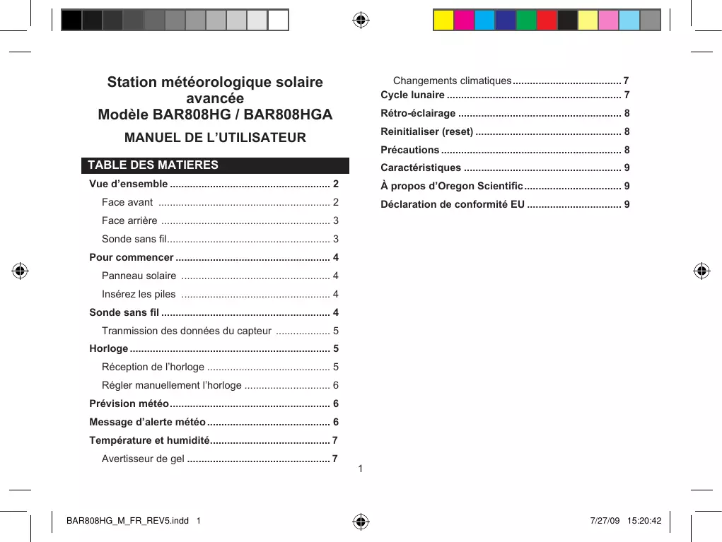 Retrouvez gratuitement la notice de l'appareil BAR808HG OREGON SCIENTIFIC au format PDF.