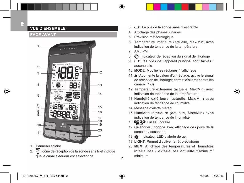 MODE D'EMPLOI BAR808HG OREGON SCIENTIFIC