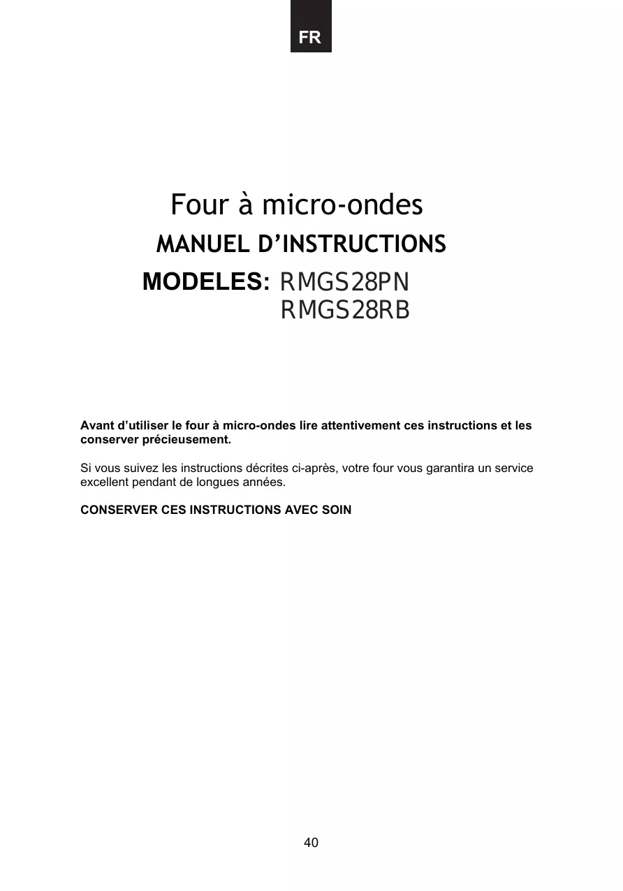RMGS28PNPRO - Micro ondes ROSIERES - Notice d'utilisation et mode d'emploi gratuit