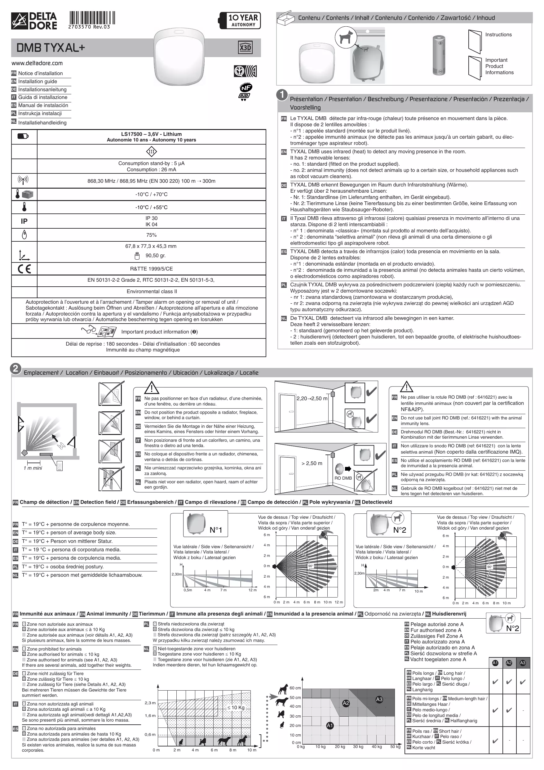 DETEC MVT DMB TYXAL - Détecteur de mouvement DELTA DORE - Notice d'utilisation et mode d'emploi gratuit