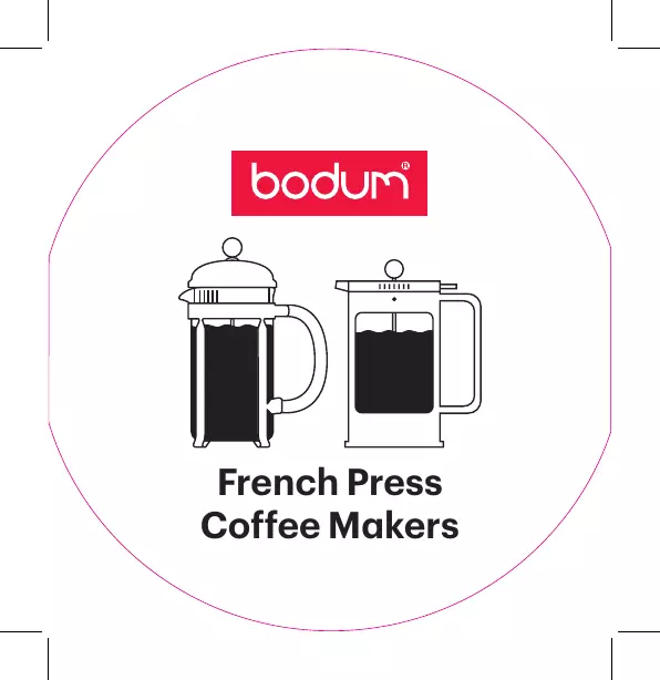 - N’utilisez que du café moulu grossièrement. Français en utilisant uniquement le poids de votre main, exercez une faible pression au sommet du bouton pour enfoncer le piston dans le récipient. Le résultat est optimal si vous l’enfoncez lentement avec une pression minimale. Si le filtre est bouché ou s’il devient difficile d’enfoncer le piston, retirez-le de la cafetière, remuez le mélange puis enfoncez de nouveau délicatement le piston. DANGER : Le liquide brûlant peut jaillir hors de la cafetière si vous appuyez trop fort. Brugsanvisning Dansk Læs disse anvisninger omhyggeligt, inden du bruger din kaffemaskine for første gang. Behold denne brugervejledning for fremtidig reference. 1 Version 1: Placer kanden på en tør, flad, skridsikker overflade. Tag et fast greb om håndtaget og træk derefter stemplet lige op og ud af kanden. Version 2: Placer kanden på en tør, flad, skridsikker overflade. Tag et fast greb om håndtaget. Drej låget mod uret for at løsne det, og træk derefter stemplet lige op og ud af kanden. Bemærk: Sørg for, at filterenheden er samlet korrekt før brug. 2 For hver kop (1,25 dl) kommes 1 spsk eller 1 BODUM® måleske grovmalet kaffe i kanden. ADVARSEL: Der må kun bruges grovmaletkaffe. Finmalet kaffe kan tilstoppe filtret og forårsage for højt tryk. Sæt kaffebryggeren på et skridsikkert underlag, der kan tåle varme. 3 Hæld varmt (ikke kogende) vand i kanden indtil vandet står ca. 2,5 cm fra kandens øverste kant. Rør rundt med en plastske. ADVARSEL: Metalskeer kan ridse eller slå skår af kanden og forårsage skade. 4 Version 1: Placer stemplet oven på pressen. Låget drejes, således at tuden lukkes. (Gælder ikke BRAZIL- modellerne) Tryk ikke filteret ned. Version 2: Placer stemplet oven på pressen. Drej låget forsigtigt med uret så det låses på plads. Tryk ikke filteret ned. Lad kaffen trække i mindst 4 min. 5 Tag et fast greb om kandens håndtag. Tuden skal være vendt væk fra Dem. Anvend kun vægten af hånden og sænk stemplet lige ned i kanden ved at trykke 6 Version 1: Låget drejes, så tuden åbnes. Skænk kaffen. Version 2: Kontroller at låget er låst fast før der skænkes. Tryk på håndtaget på låget for at åbne hældtuden, og skænk derefter kaffen. 7 Rengøring – Skru filterelementet fra hinanden og rengør stemplet hver gang, det har været i brug. Kun filteret, glasset, plastik- og kromdelene tåler opvaskemaskine. SIKKERHEDSANVISNING
