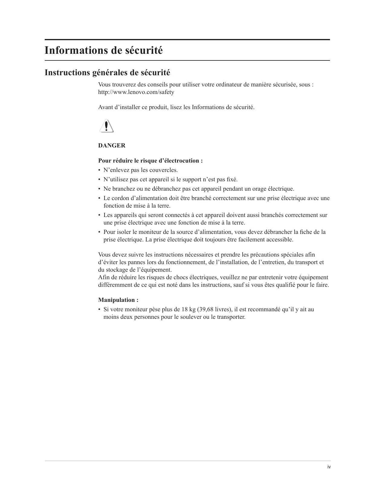 Vous trouverez des conseils pour utiliser votre ordinateur de manière sécurisée, sous : http://www.lenovo.com/safety