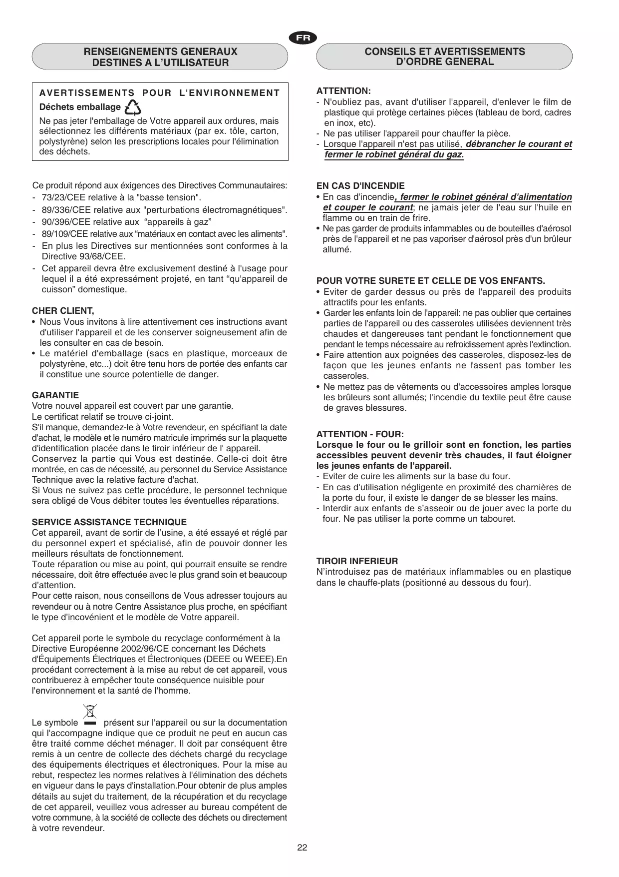 - Cet appareil devra être exclusivement destiné à l'usage pour lequel il a été expressément projeté, en tant "qu'appareil de cuisson" domestique.