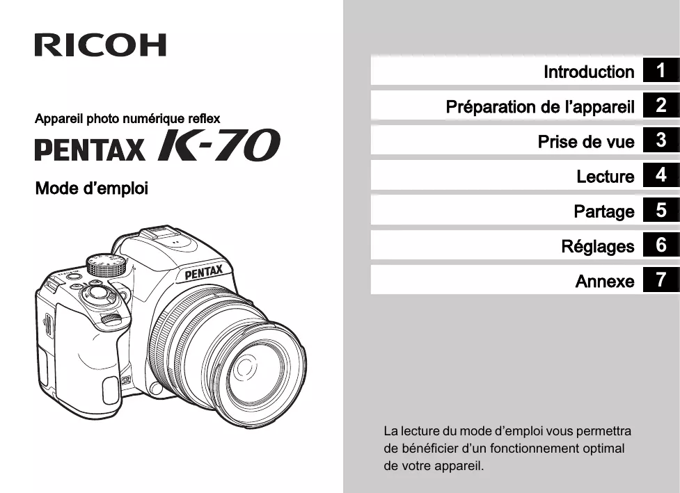 K-70 - Appareil_photo PENTAX - Notice d'utilisation et mode d'emploi gratuit
