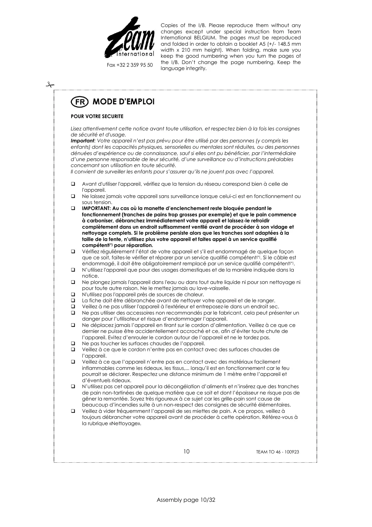 TO 46W - Grille pain TEAM - Notice d'utilisation et mode d'emploi gratuit
